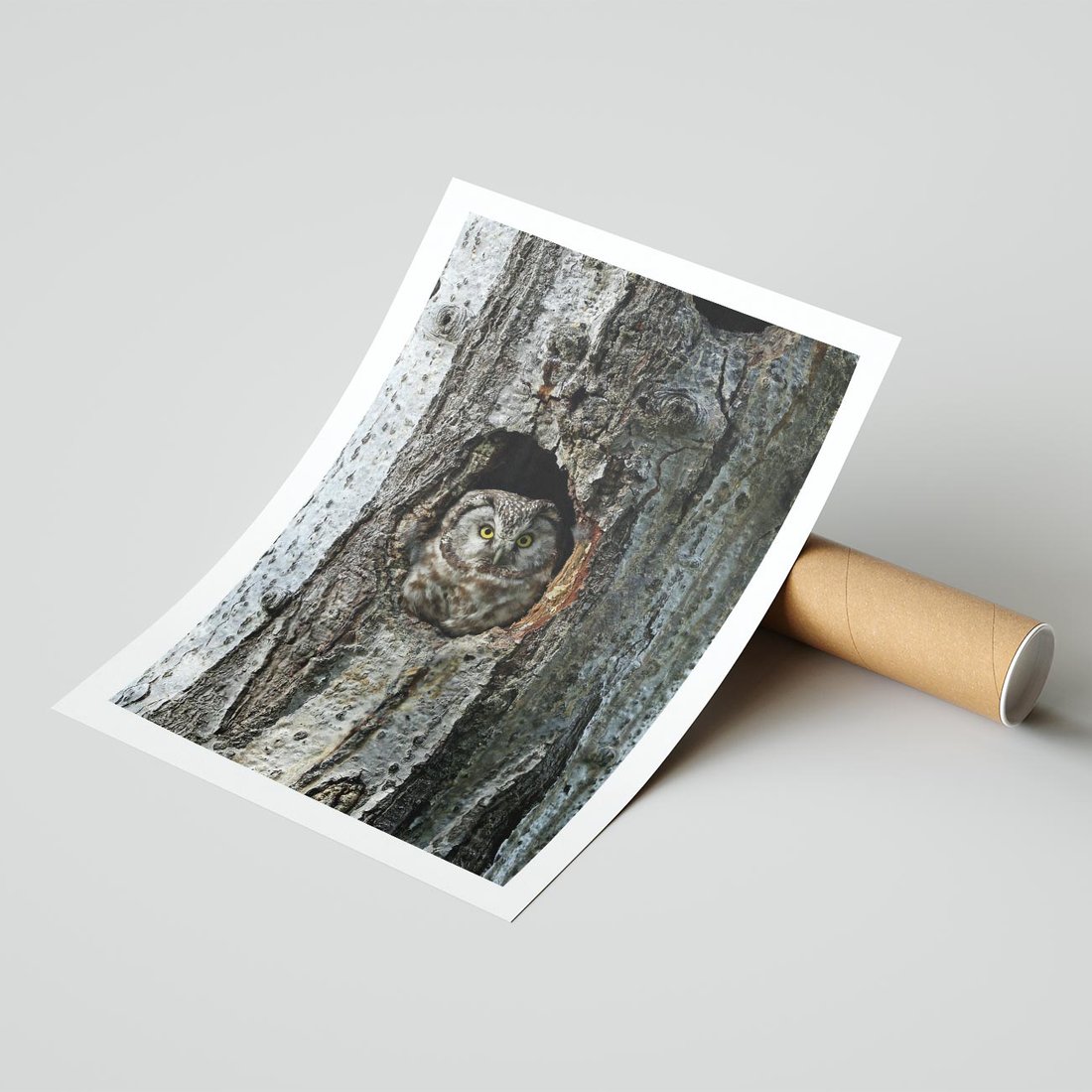Plakat bez ramy 40x50 - Tajemniczy W świecie Nocy - sowa, dziupla