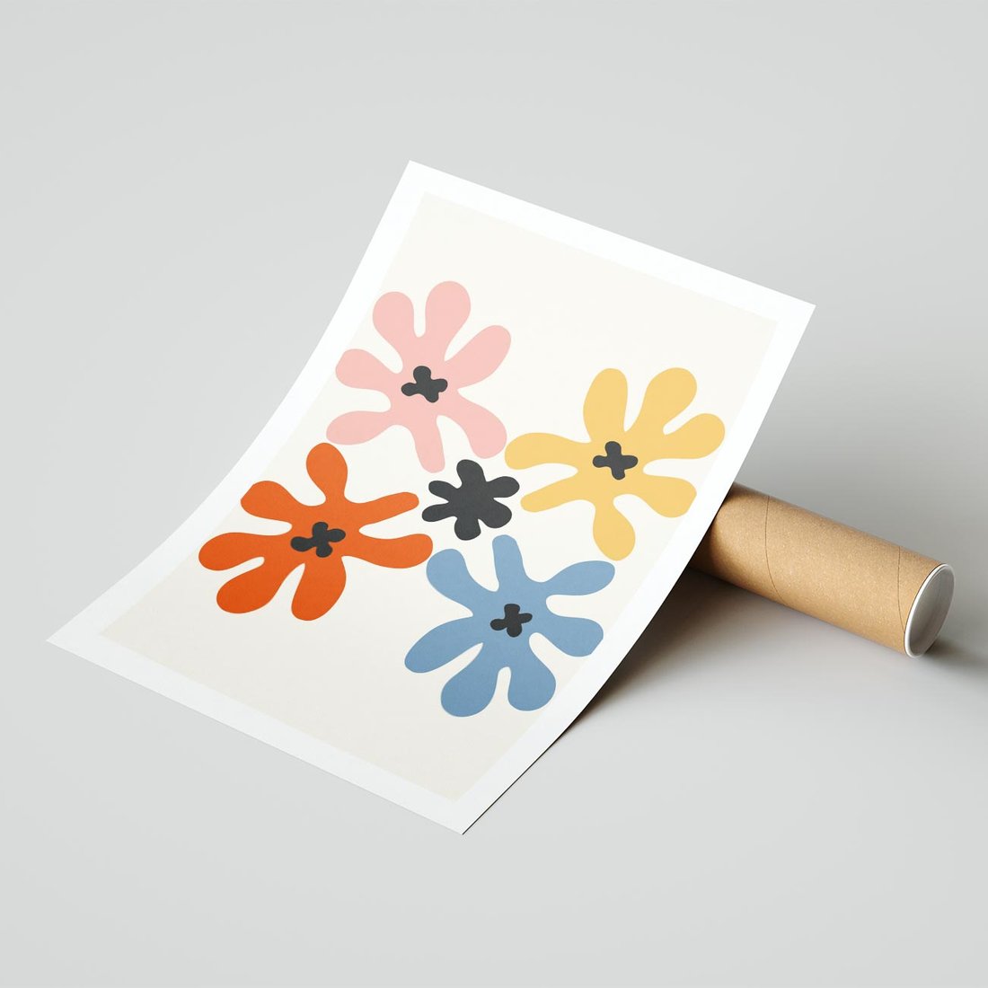 Ten minimalistyczny obraz przedstawia abstrakcyjne wielokolorowe kwiaty o dziwnych, intrygujących formach. Wykorzystując minimalizm, tworzy unikalny efekt wizualny, który ożywi i urozmaici każde wnętrze.