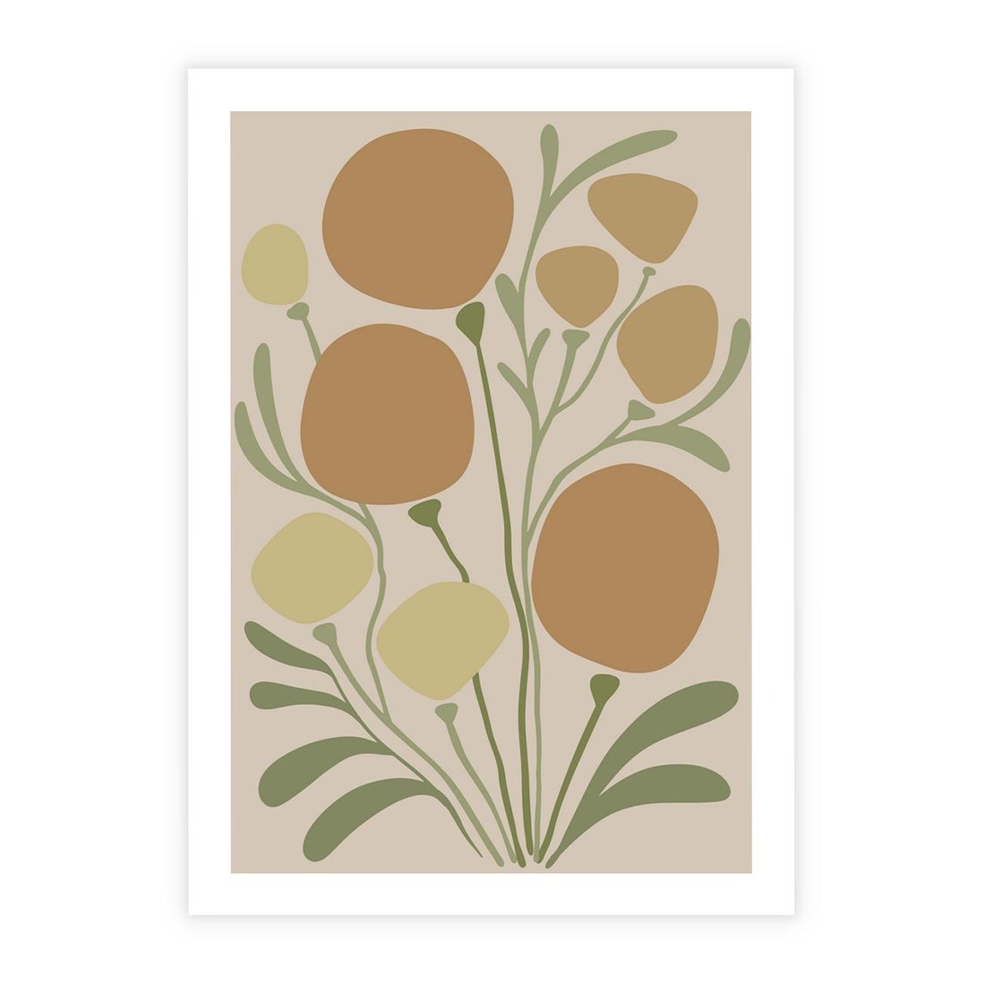 Ten nowoczesny plakat przedstawia abstrakcyjną roślinność w stylu modern art, używając delikatnych beżowych odcieni i subtelnych kolorów. To dzieło sztuki wnosi do Twojej przestrzeni spokój i nowoczesność, jednocześnie zachowując estetykę. Idealny wybór dla miłośników minimalistycznego designu z subtelnym akcentem natury.