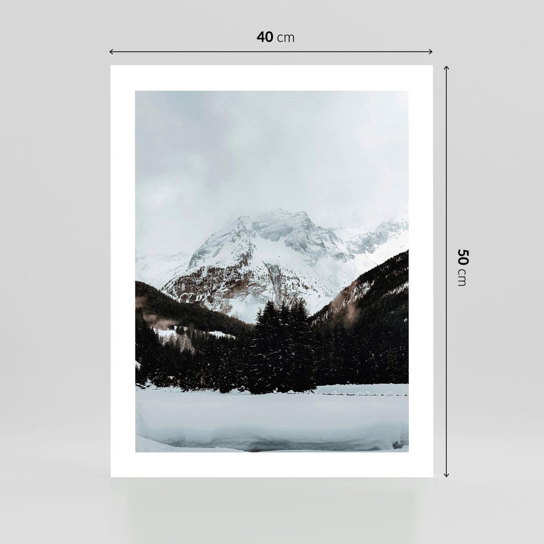 Plakat bez ramy 40x50 - W Cieniu Śnieżnych Szczytów - górski krajobraz, zima