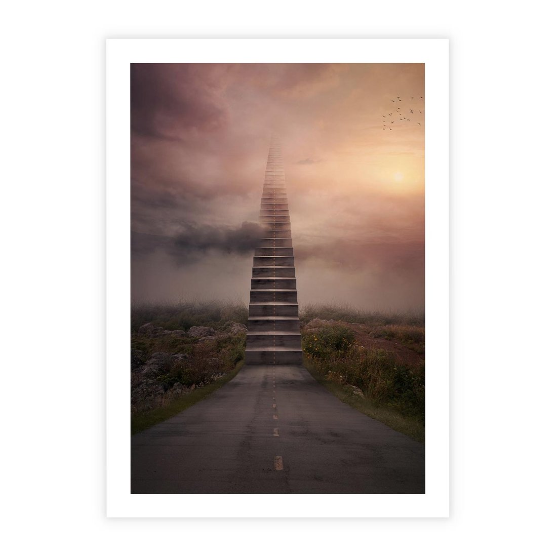 Plakat bez ramy 40x50 - Wędrówka po malowniczej drodze - droga, schody