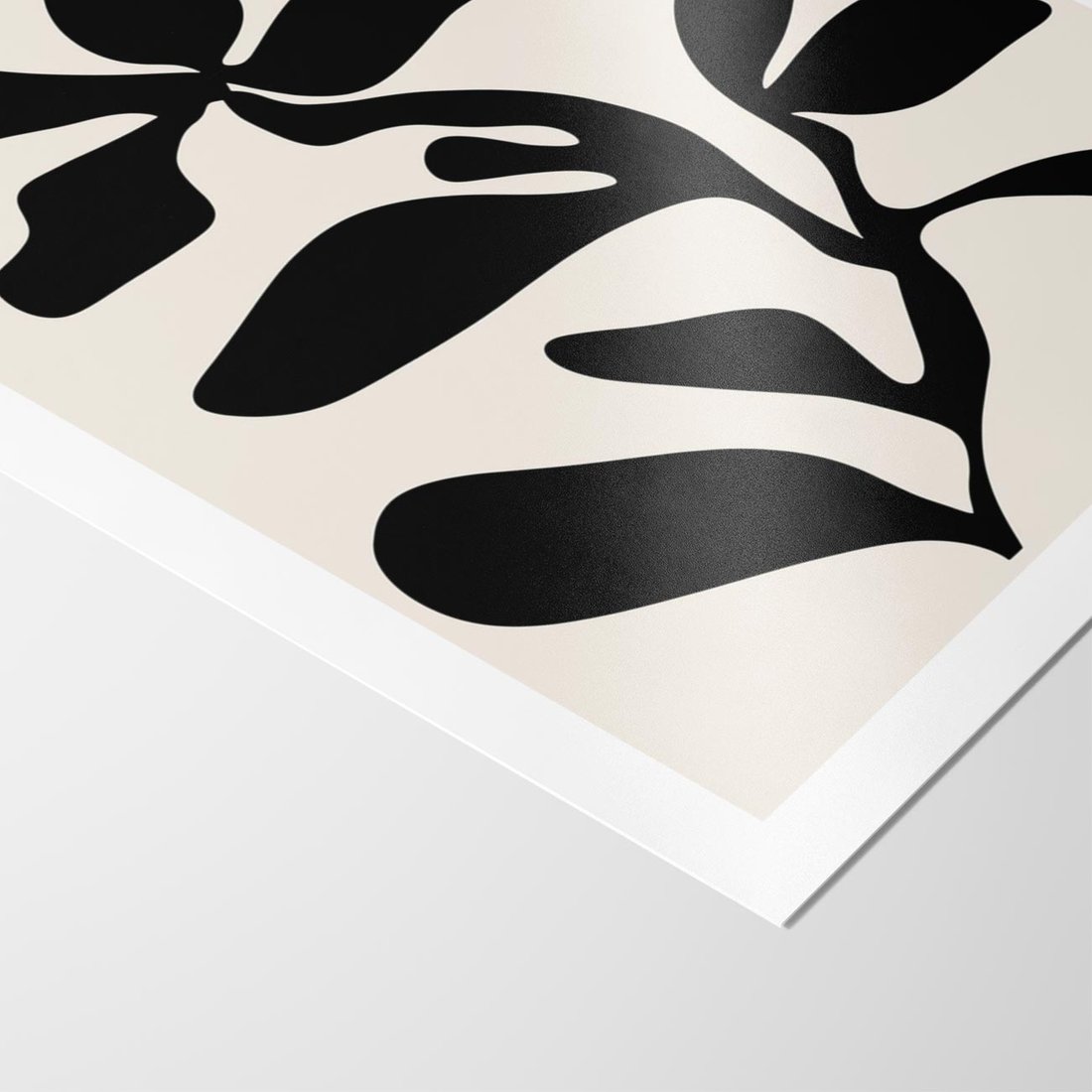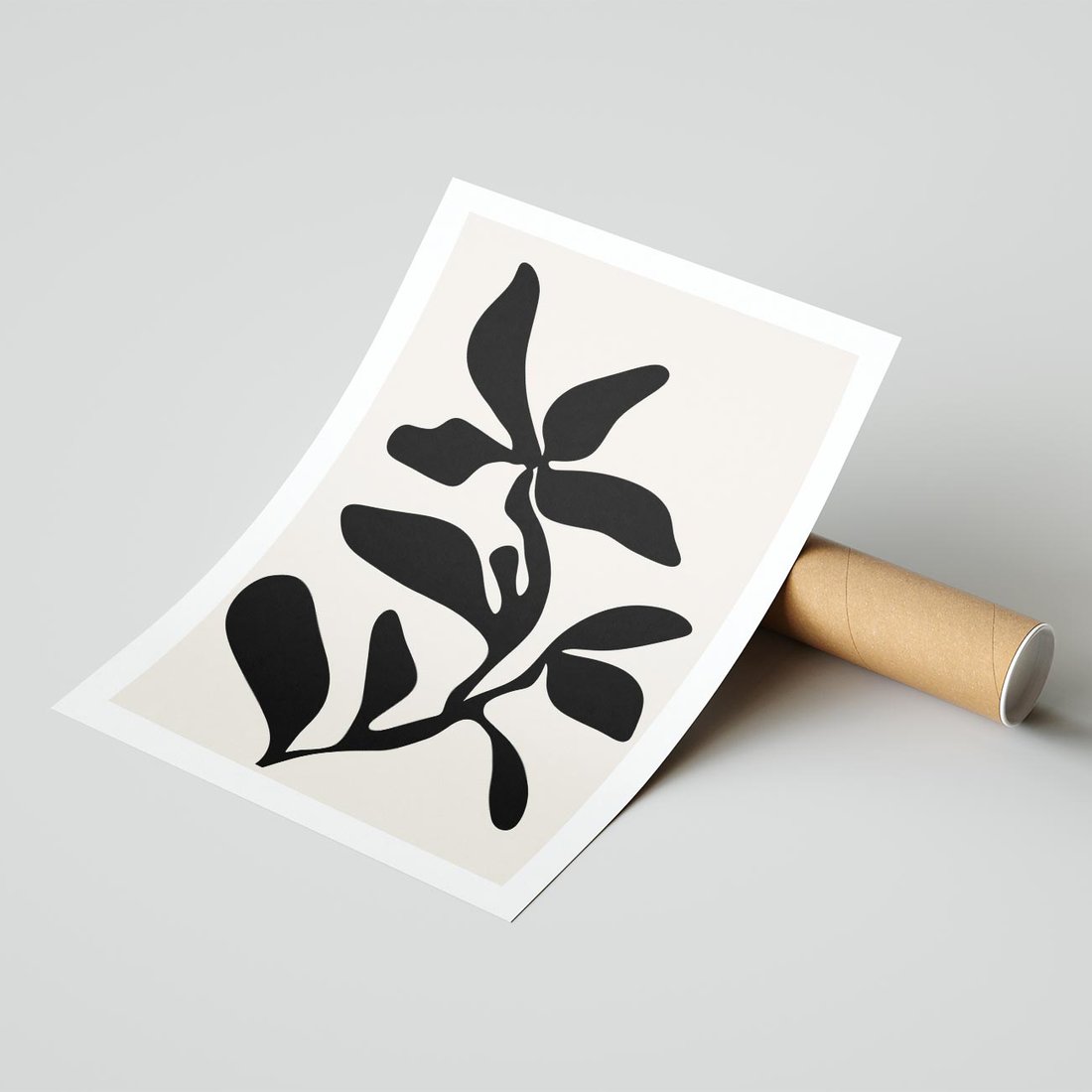 Ten abstrakcyjny minimalistyczny plakat przedstawia delikatny kwiat w kontrastujących odcieniach czerni i bieli. To wyraz nowoczesnej sztuki, który dodaje subtelności i elegancji do przestrzeni.