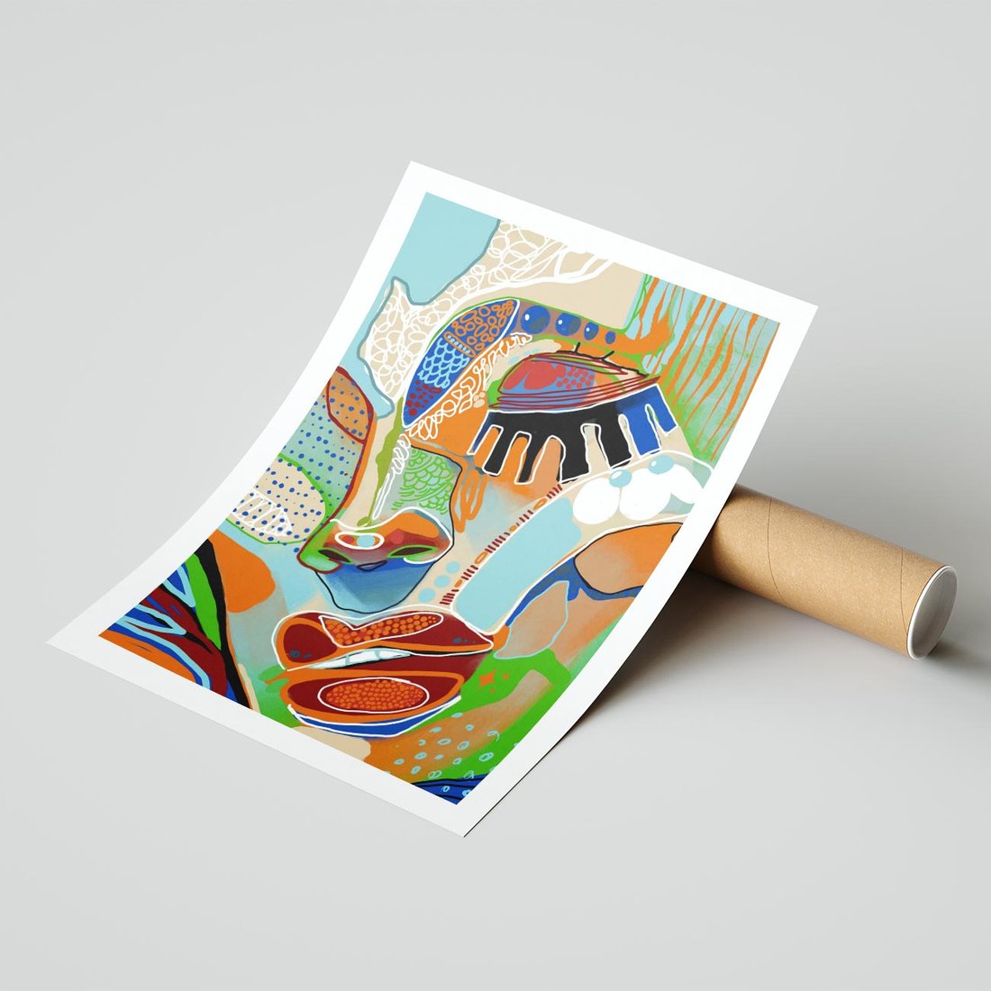 Plakat bez ramy 40x50 - Wibracje Kształtów - abstrakcyjny portret kobiety, twarz
