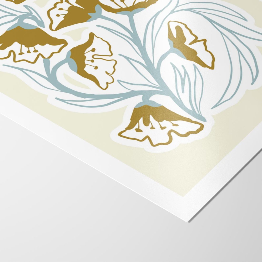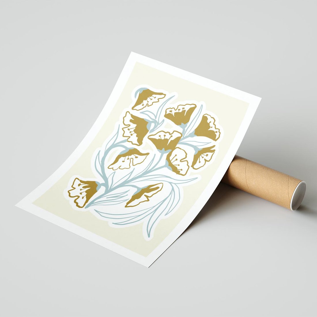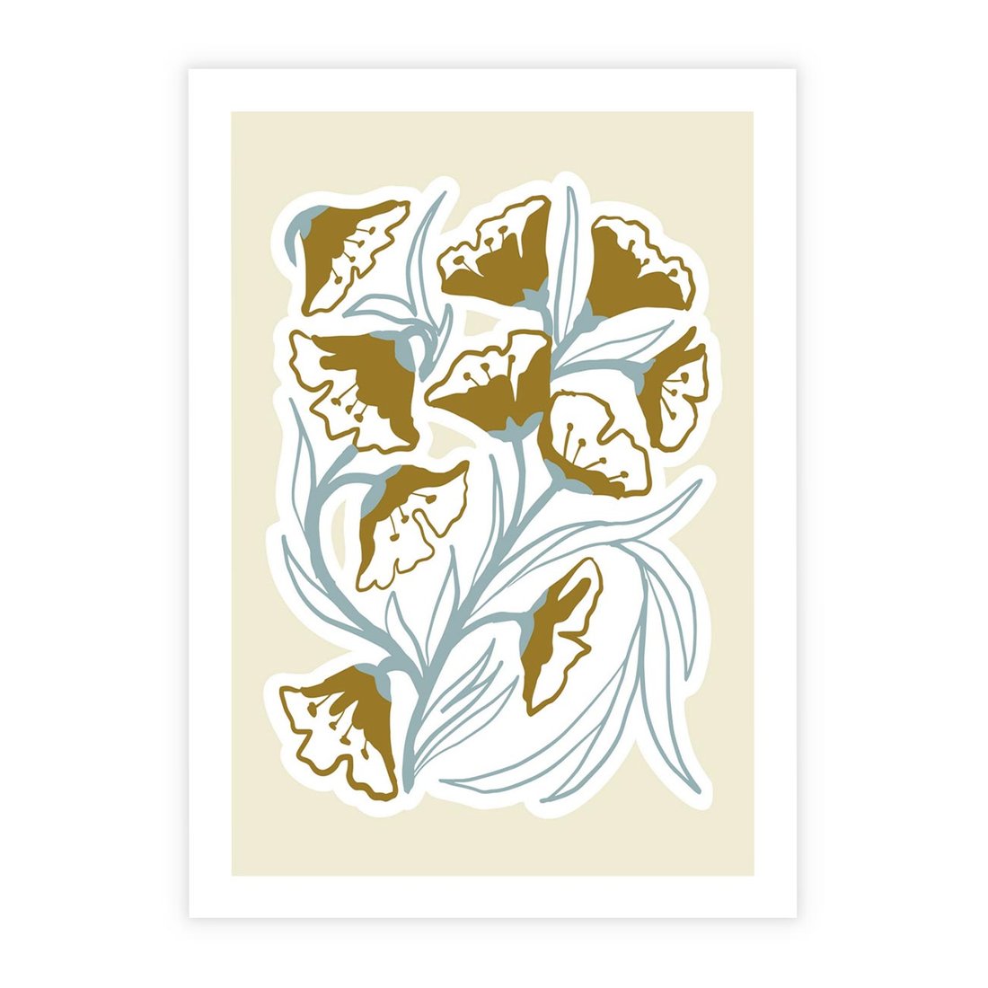 Plakat bez ramy 40x50 - Wibracje Widzenia - abstrakcyjne beżowe kwiaty, elegancka kompozycja