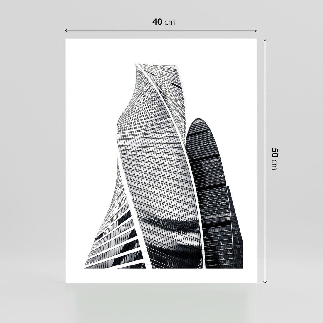 Plakat bez ramy 40x50 - Wieżowce z Falistymi Kształtami - nowoczesne wieżowce, czarno biała fotografia