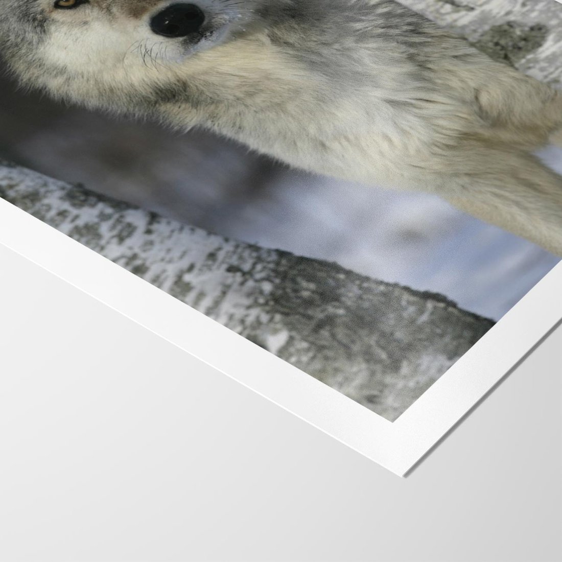 Przemierzaj zimowy las w towarzystwie majestatycznego wilka na tym pięknym obrazie. Jego biały płaszcz i przenikliwe spojrzenie tworzą aurę dzikości i tajemnicy. Ta kompozycja dodaje siły i natury, idealna dla miłośników przyrody i piękna zwierząt.