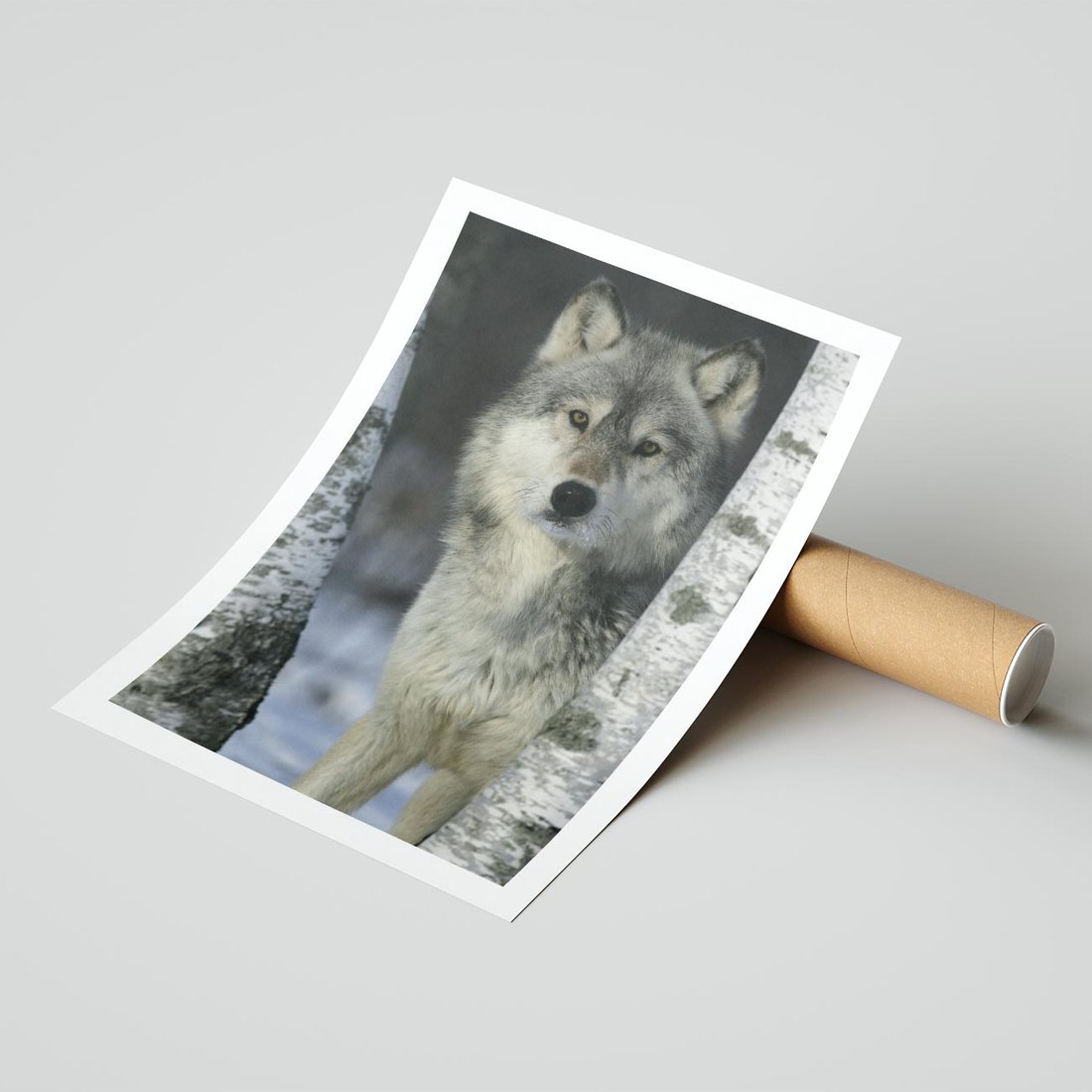 Plakat bez ramy 40x50 - Wilk w Zimowym Lesie - wilk, las