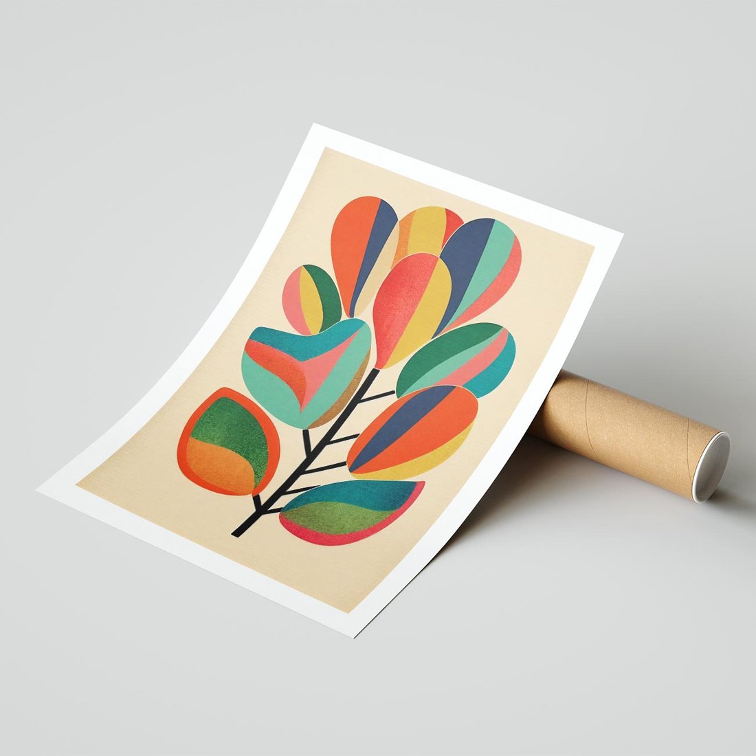Plakat bez ramy 40x50 - Wnętrza Kształtów - abstrakcyjny kolorowy tęczowy obraz, inspiracje roślinne