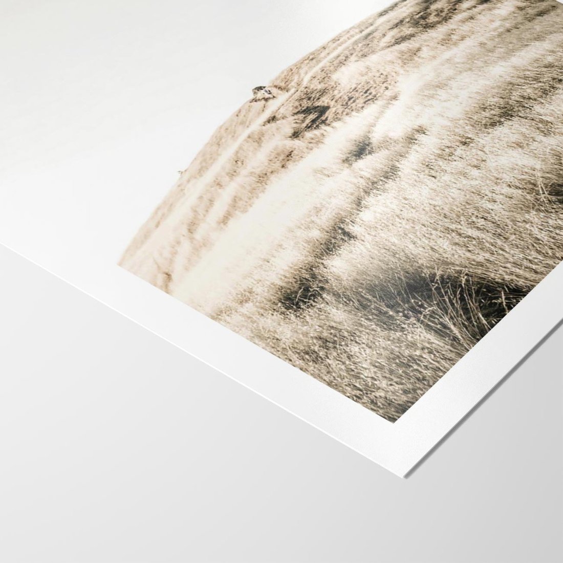 Obraz przedstawia malownicze wzgórze z trawami w odcieniach sepii, co nadaje mu nostalgiczny i klasyczny charakter.