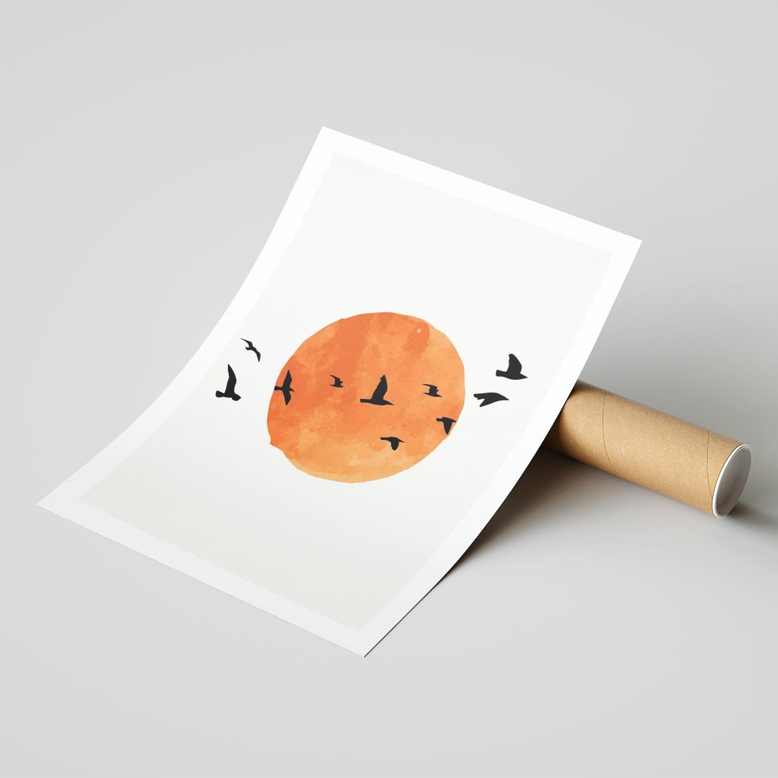 - Plakat bez ramy 40x50 - Zachód Słońca i Ptaki