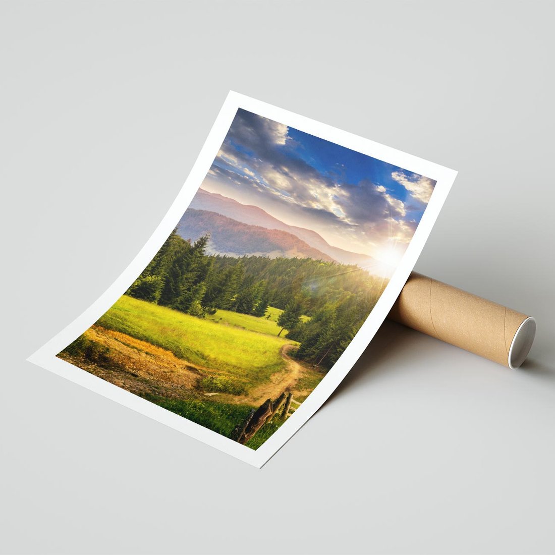 - Plakat bez ramy 40x50 - Zachód słońca na łące