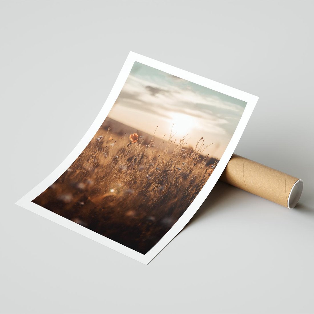 - Plakat bez ramy 40x50 - Zachwyt zachodem słońca na łące