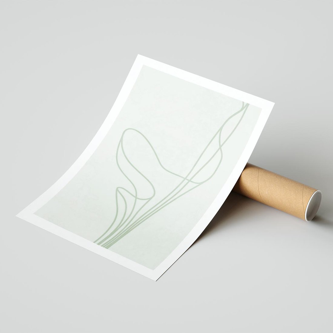 Ten nowoczesny plakat przedstawia abstrakcyjne, delikatne zielone linie. To subtelne połączenie kształtów wprowadza do Twojej przestrzeni nowoczesność i harmonię, tworząc jednocześnie interesujący akcent artystyczny.
