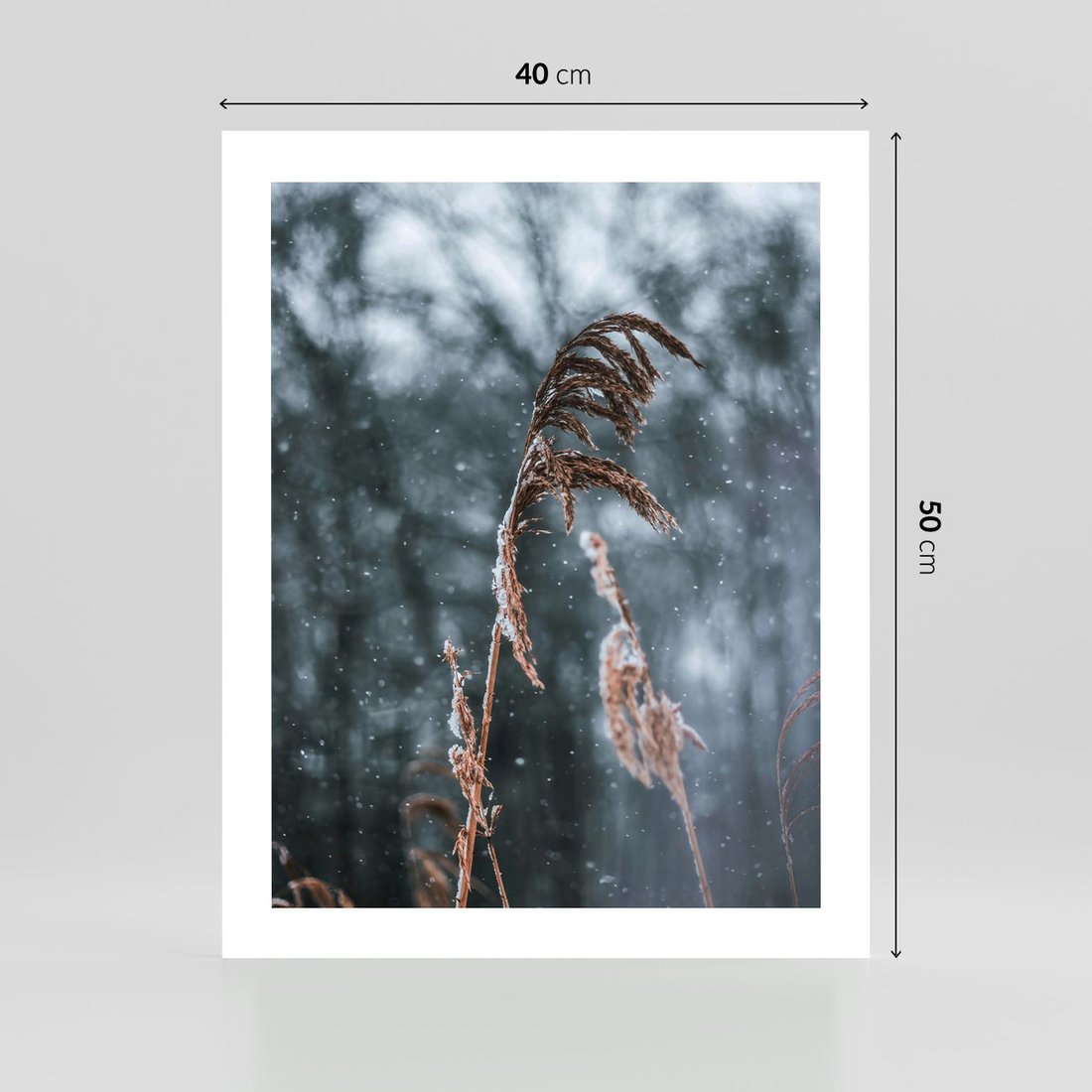 Plakat bez ramy 40x50 - Zima na Łonie Natury - sucha wysoka trawa, w zimie