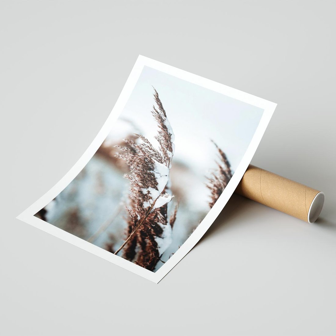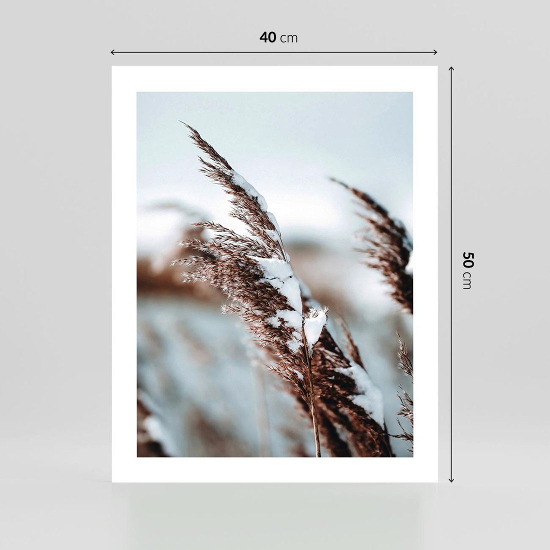 Plakat bez ramy 40x50 - Zima na Suchych Trawach - suche trawy, śnieg wysokich na trawach