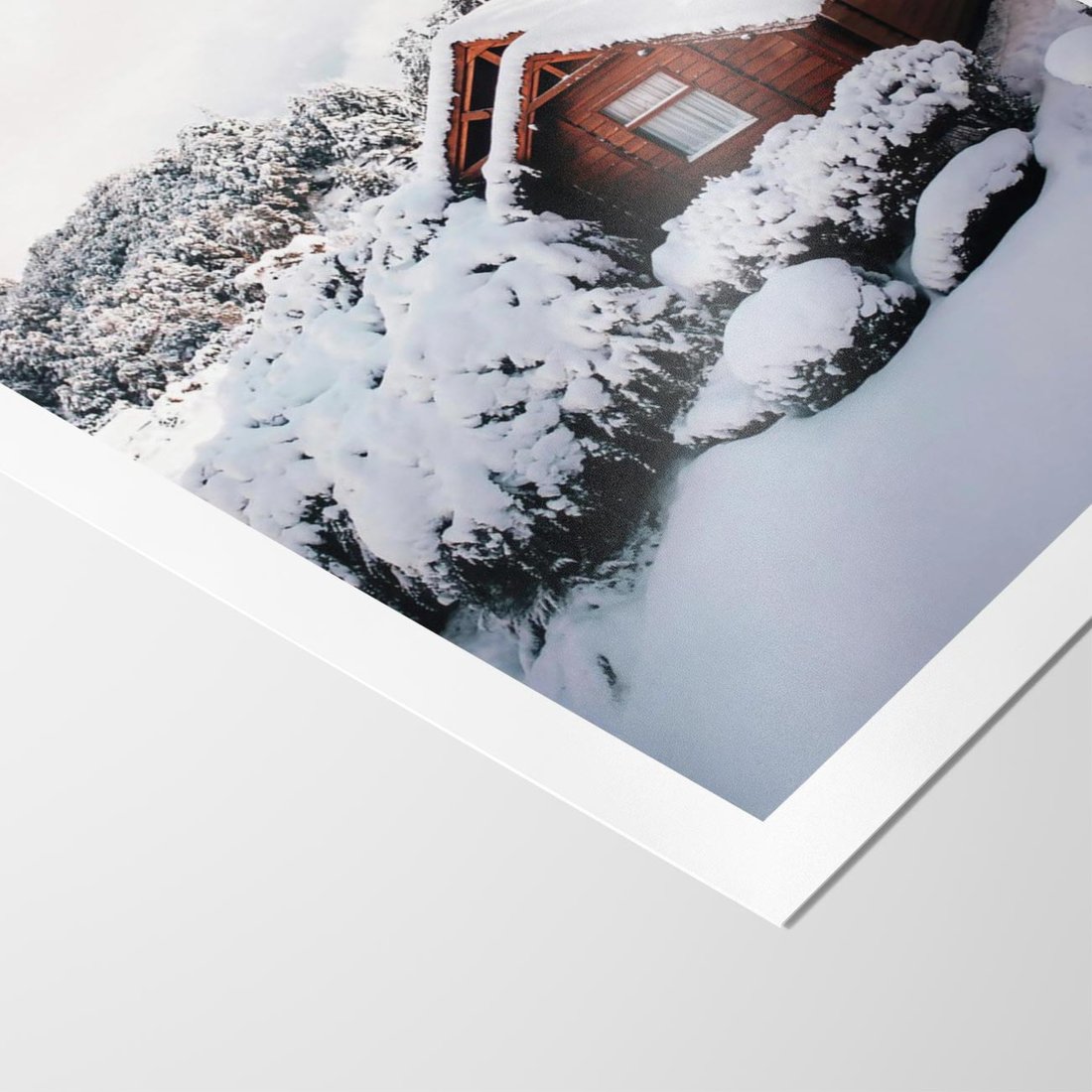 Obraz przedstawia zimowy pejzaż górski z ośnieżonymi szczytami i uroczą chatką w górach. Ta malownicza kompozycja doskonale pasuje do wnętrz, które pragną wprowadzić atmosferę zimowej scenerii i przytulności.