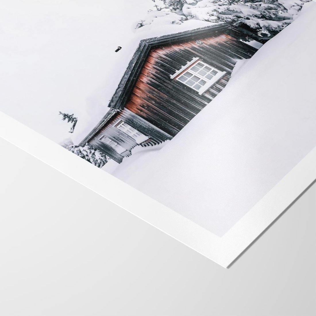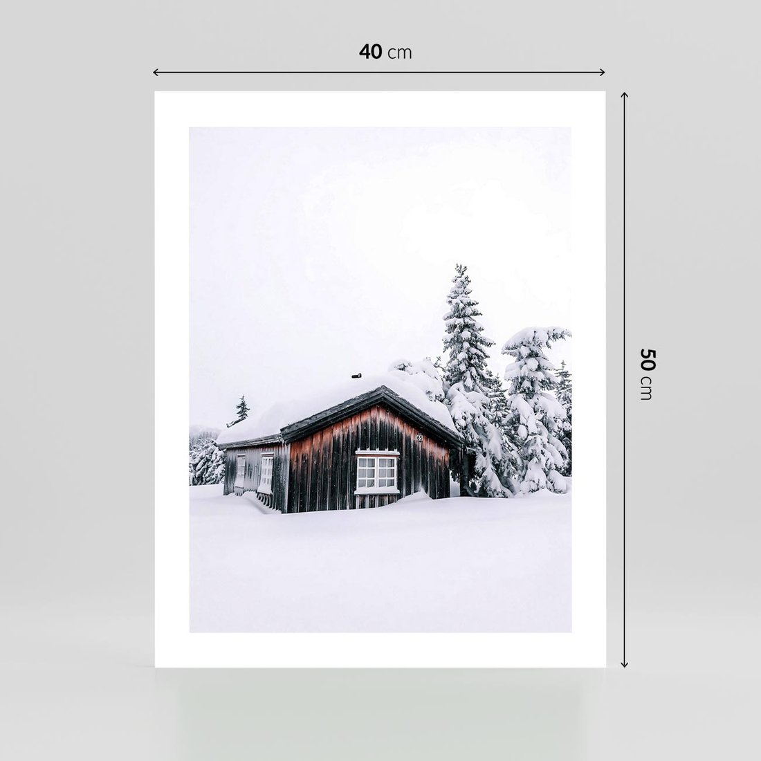 Plakat bez ramy 40x50 - Zimowy Azyl: Domek w Górach - domek w górach, śnieg