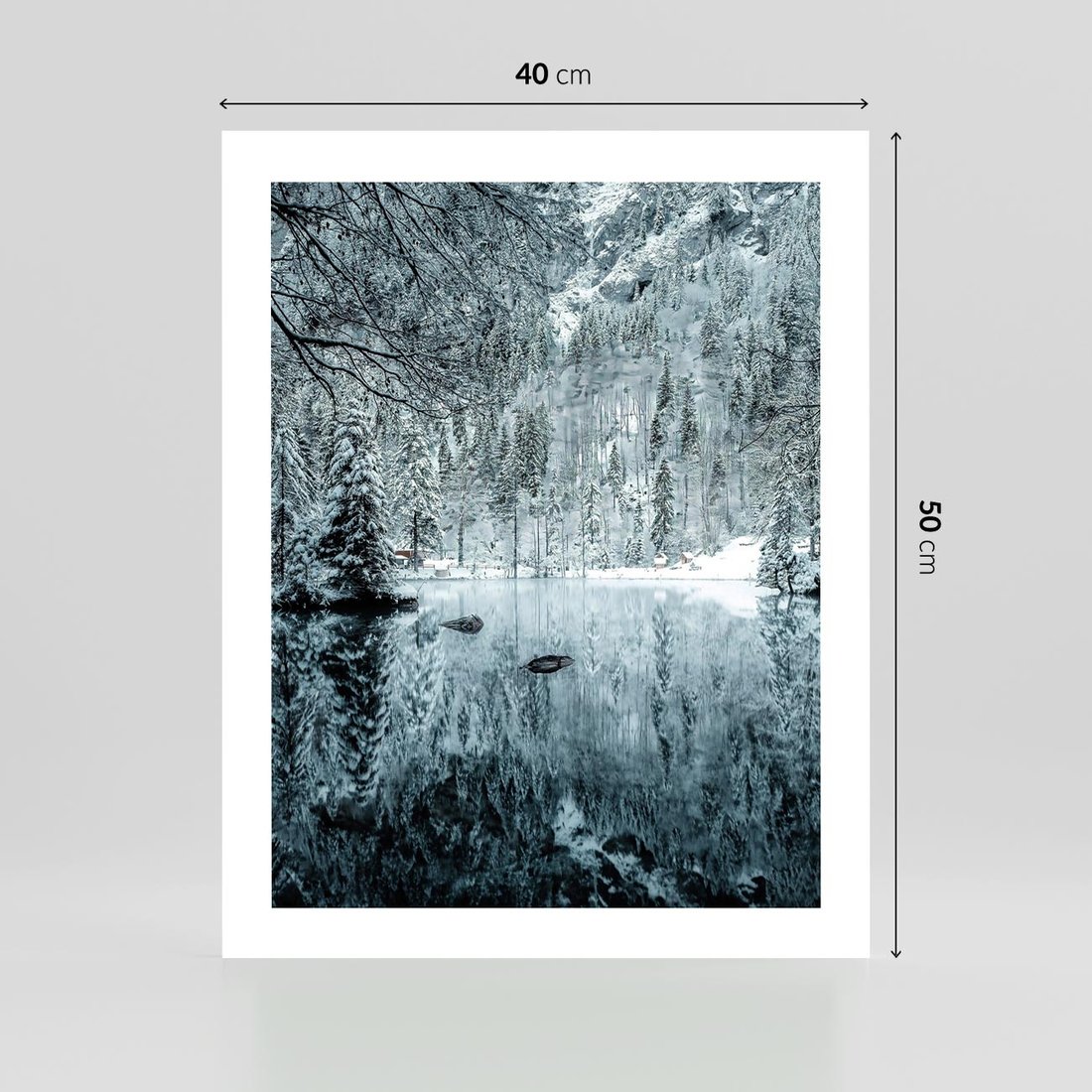 Plakat bez ramy 40x50 - Zimowy Raj - zimowy górski krajobraz, jezioro w górach