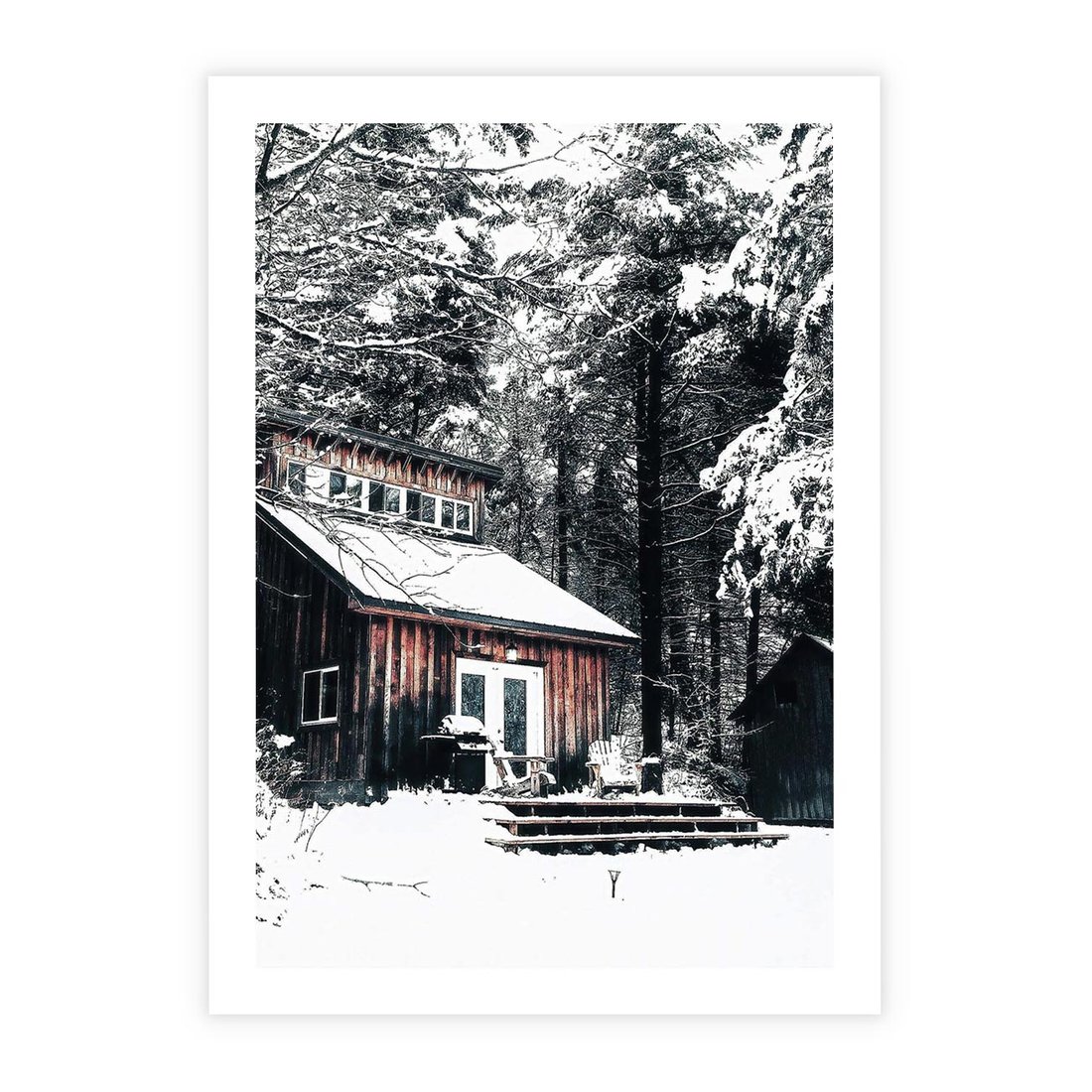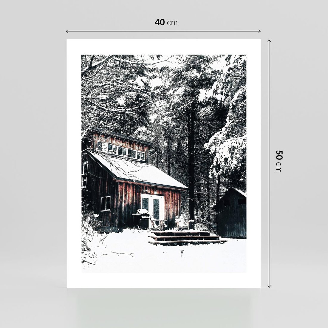 Plakat bez ramy 40x50 - Zimowy Urok Drewnianego Domku - zima, drewniany domek