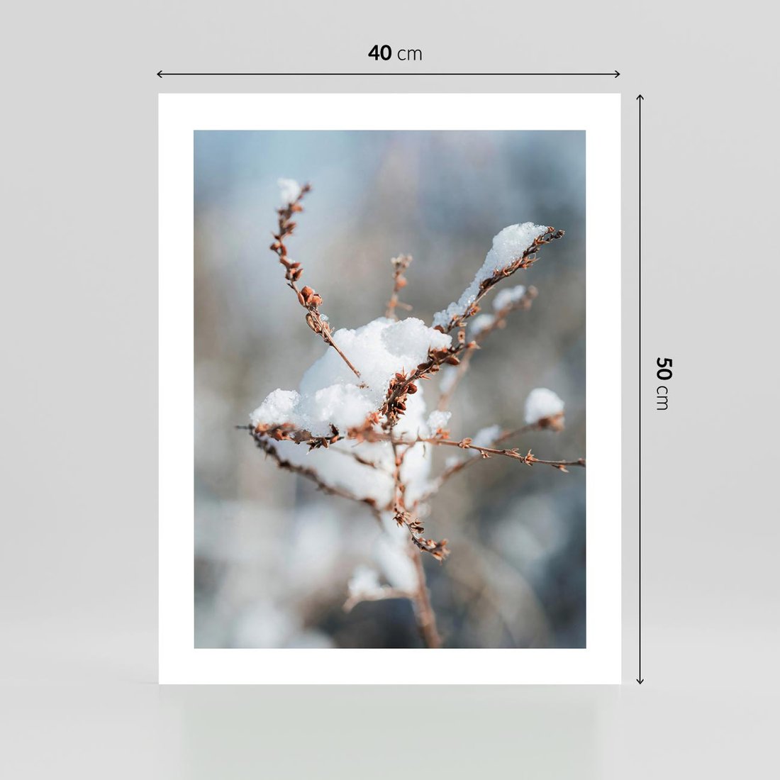 Plakat bez ramy 40x50 - Zimowy Urok Natury - gałązki pod śniegiem, natura