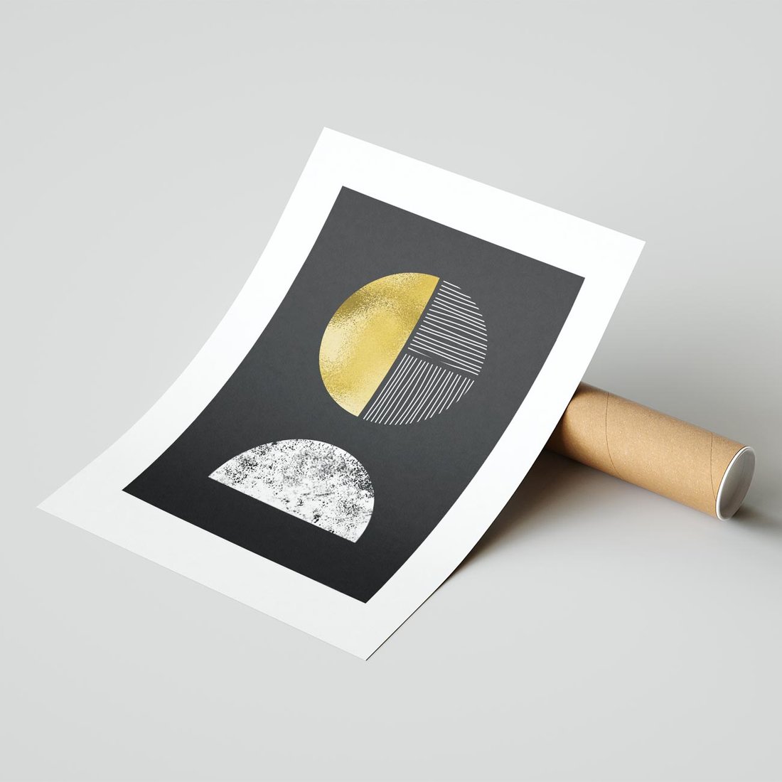 Plakat bez ramy 40x50 - Złote Koła i Geometryczne Formy - grafika, modern