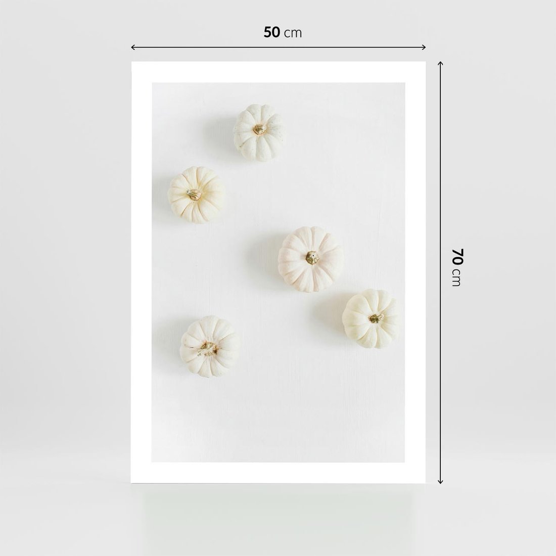 - Plakat bez ramy 50x70 - Biała Jesień: Dynie na Jasnym Tle