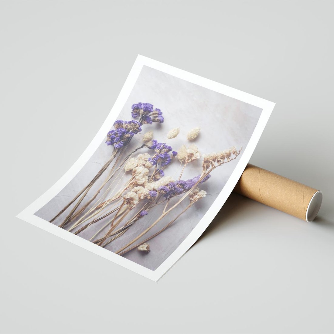 Plakat bez ramy 50x70 - Błękitno-Biała Harmonia - suszone kwiaty, błekitne