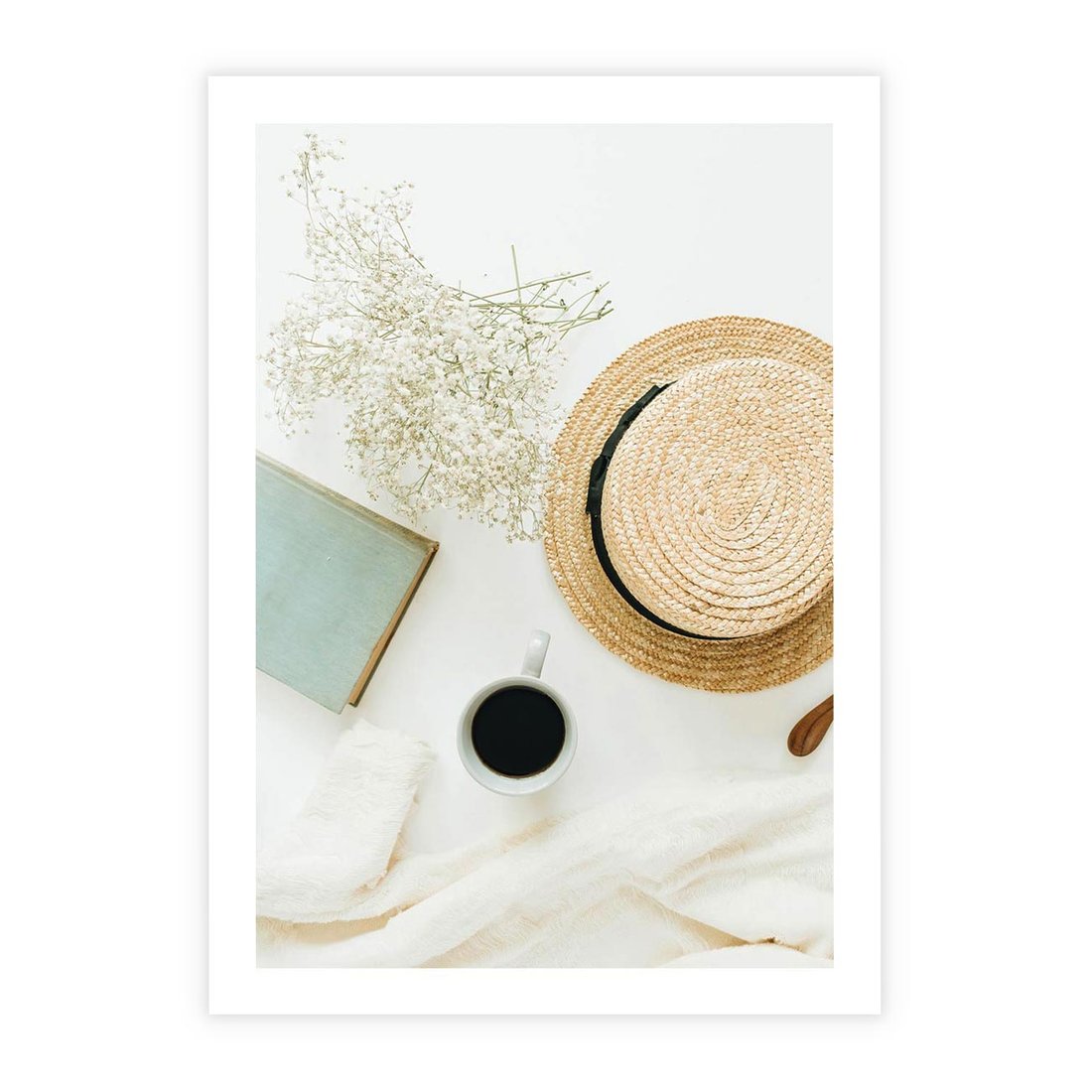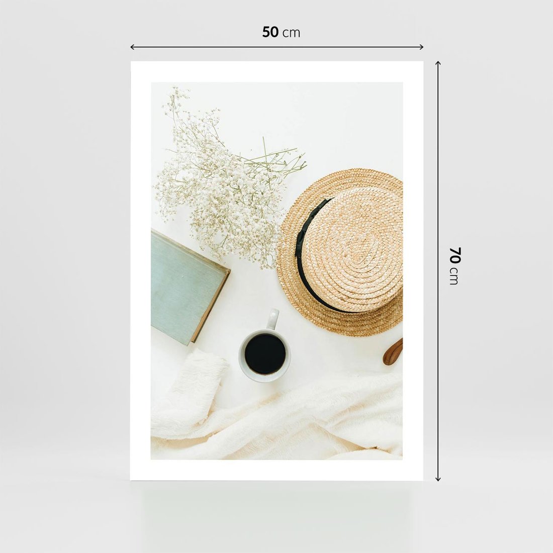 Plakat bez ramy 50x70 - Boho Urok - kompozycja boho, slomkowy kapelusz
