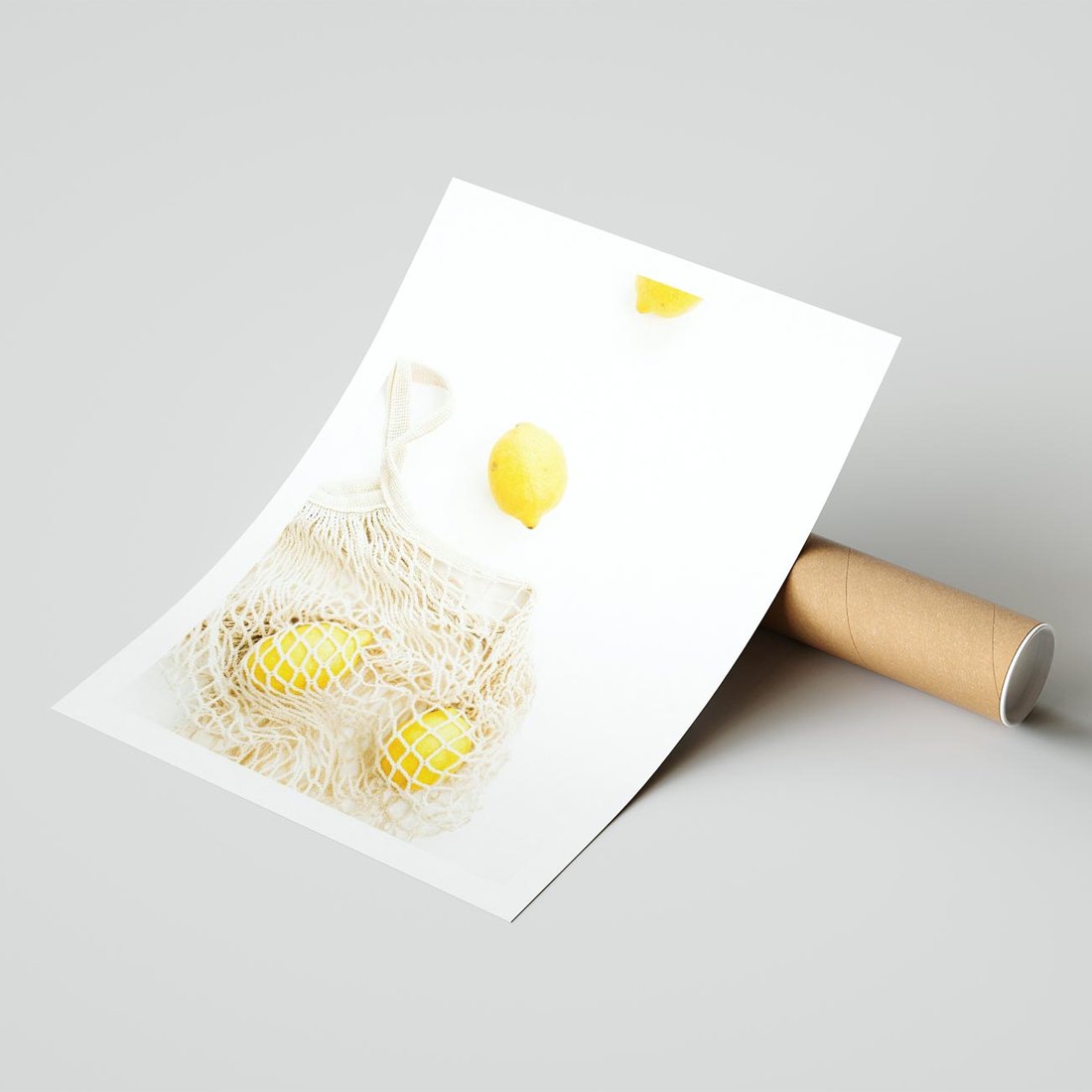 Plakat bez ramy 50x70 - Cytrynowa Siatka - cytryny, materiałowa siatka