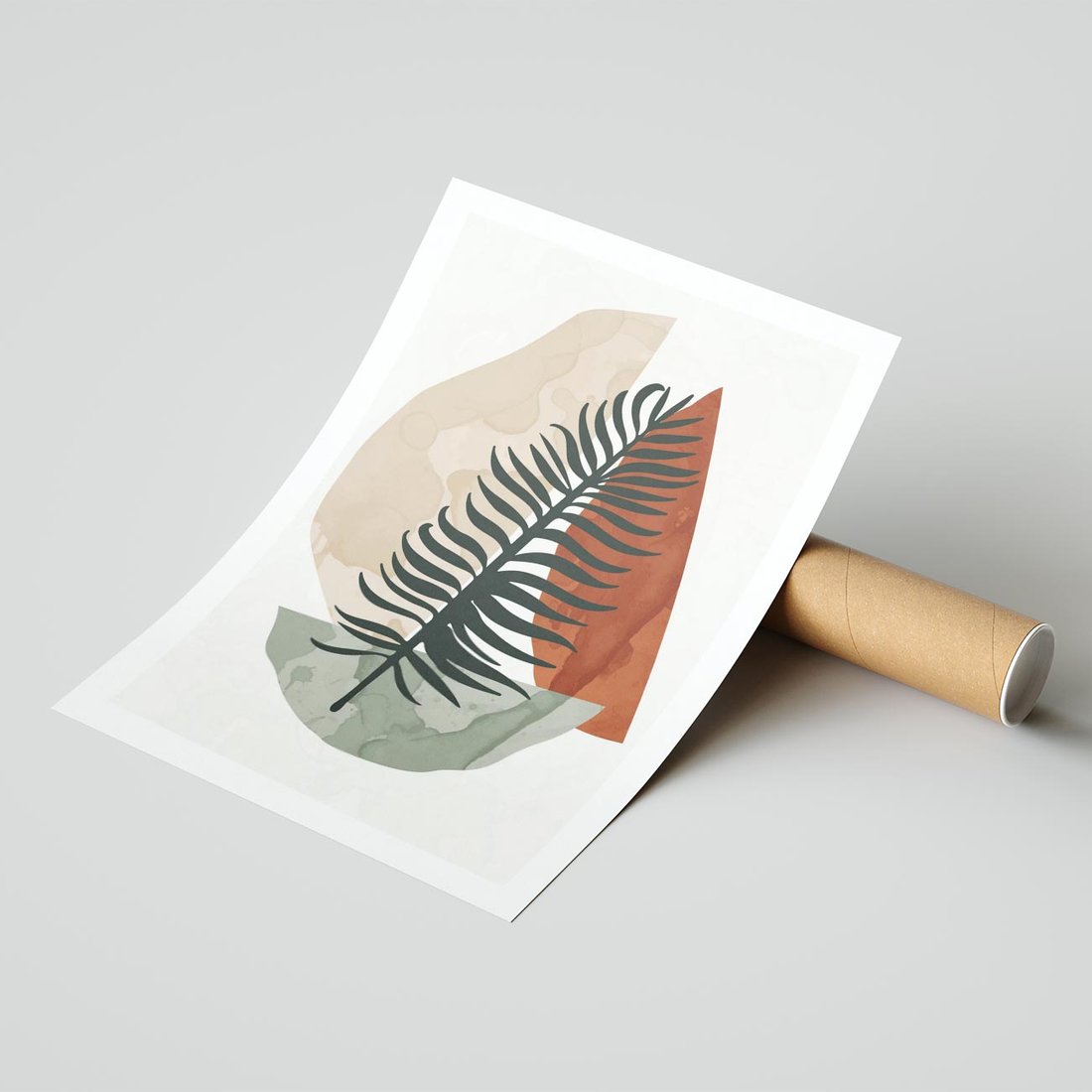- Plakat bez ramy 50x70 - Czarna Palma w Brązowej Abstrakcji
