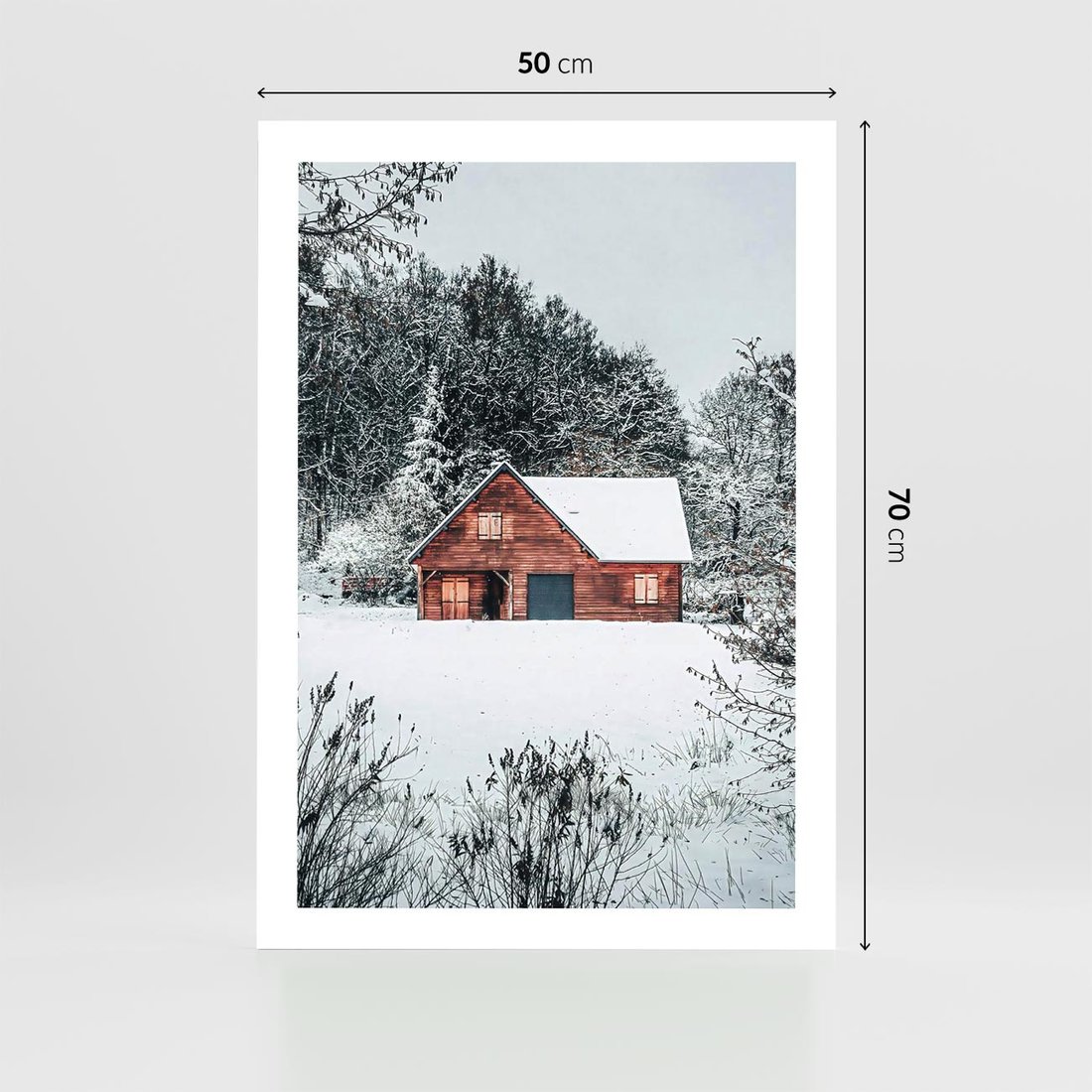 - Plakat bez ramy 50x70 - Domek w Górach Pokryty Śniegiem