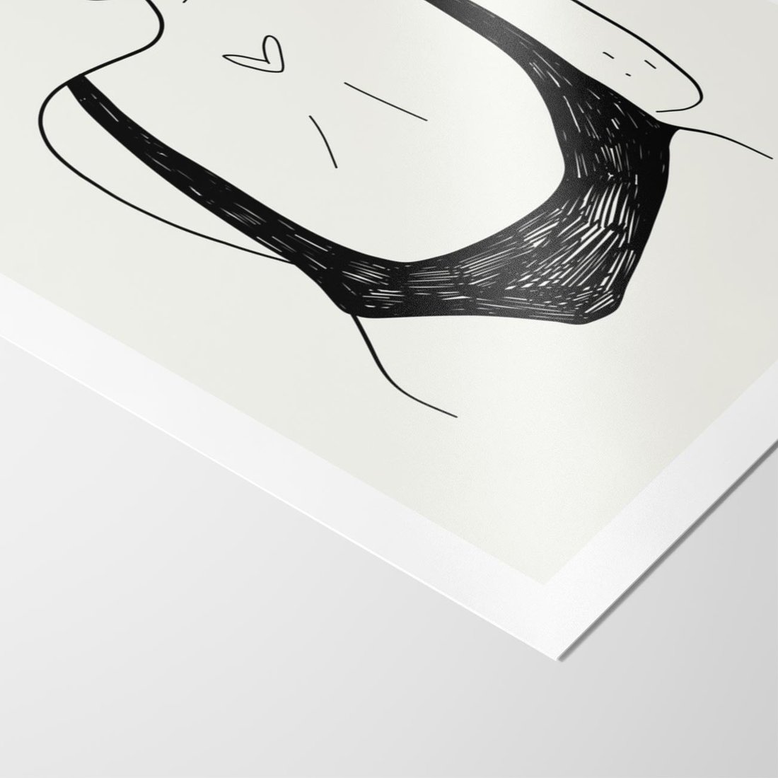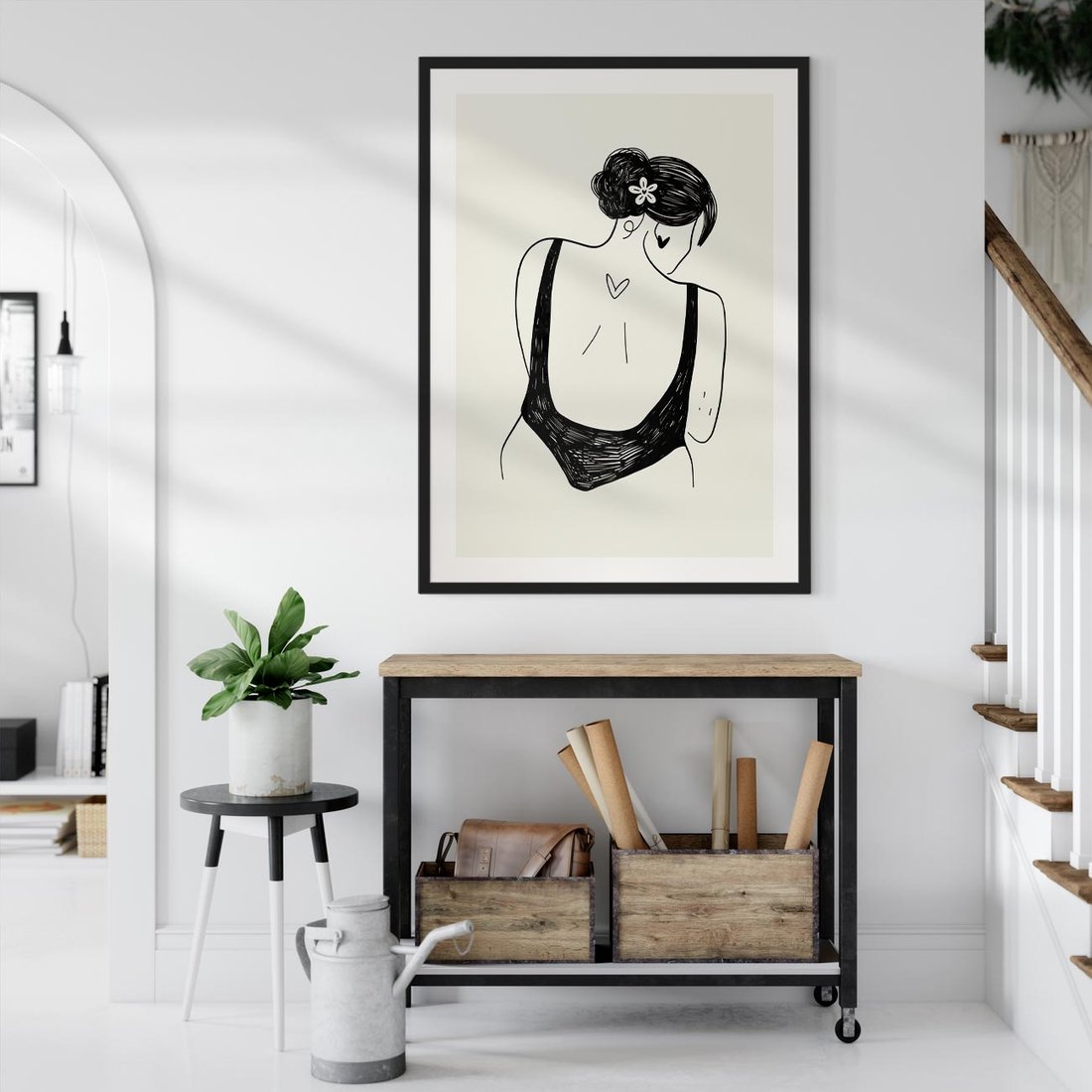 Ten nowoczesny rysunek uchwycił esencję piękna kobiecego ciała, prezentując delikatną harmonię między kobietą a sztuką w formie wyjątkowej kompozycji.