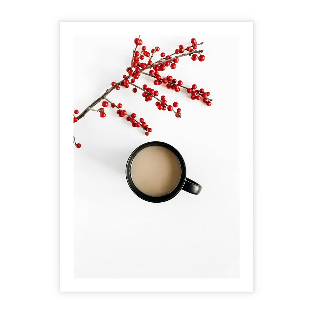 - Plakat bez ramy 50x70 - Filiżanka Kawy z Gałązką Jarzębiny