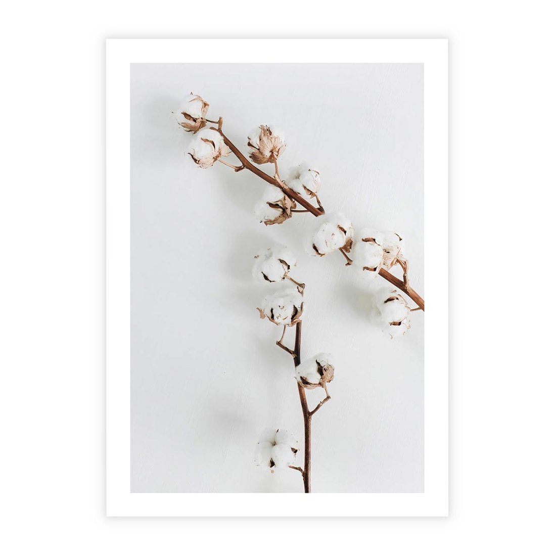 - Plakat bez ramy 50x70 - Gałęzie Bawełny na Białym Tle