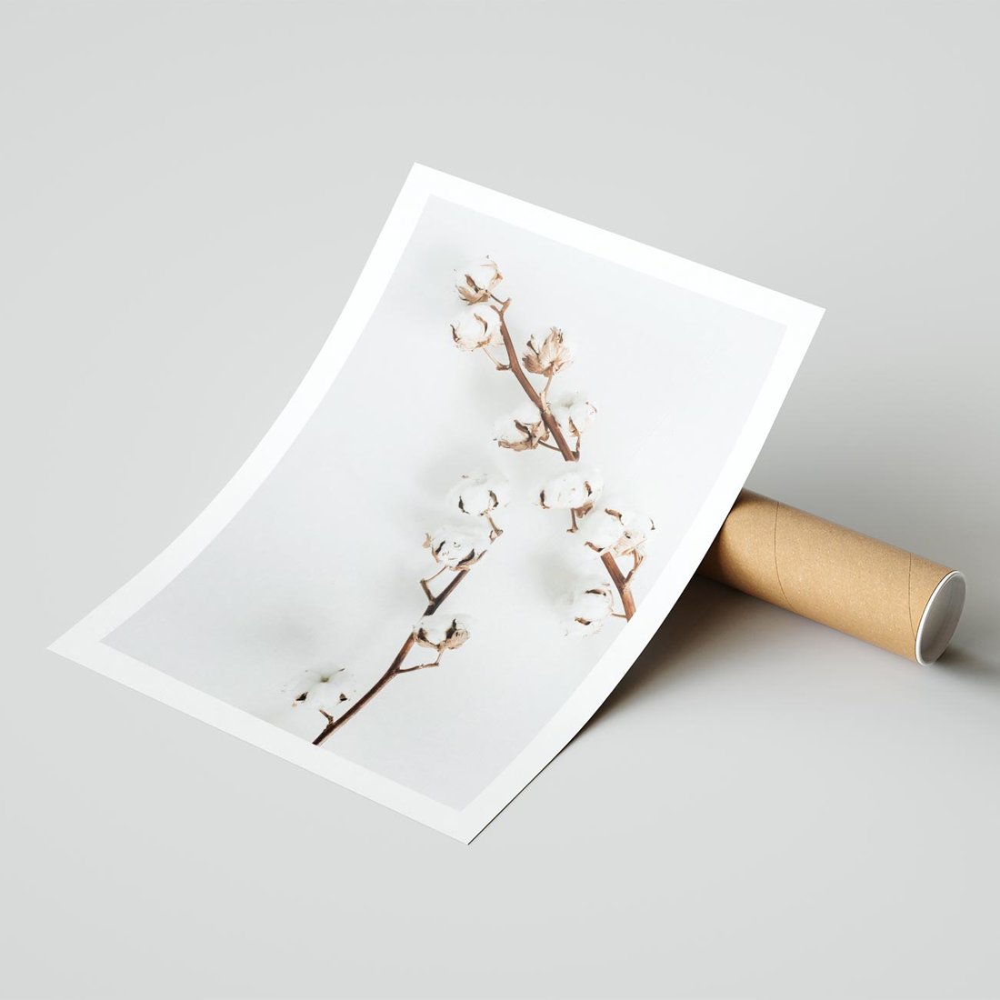 Plakat bez ramy 50x70 - Gałęzie Bawełny na Białym Tle - gałęzie bawełny na białym tle, minimalizm