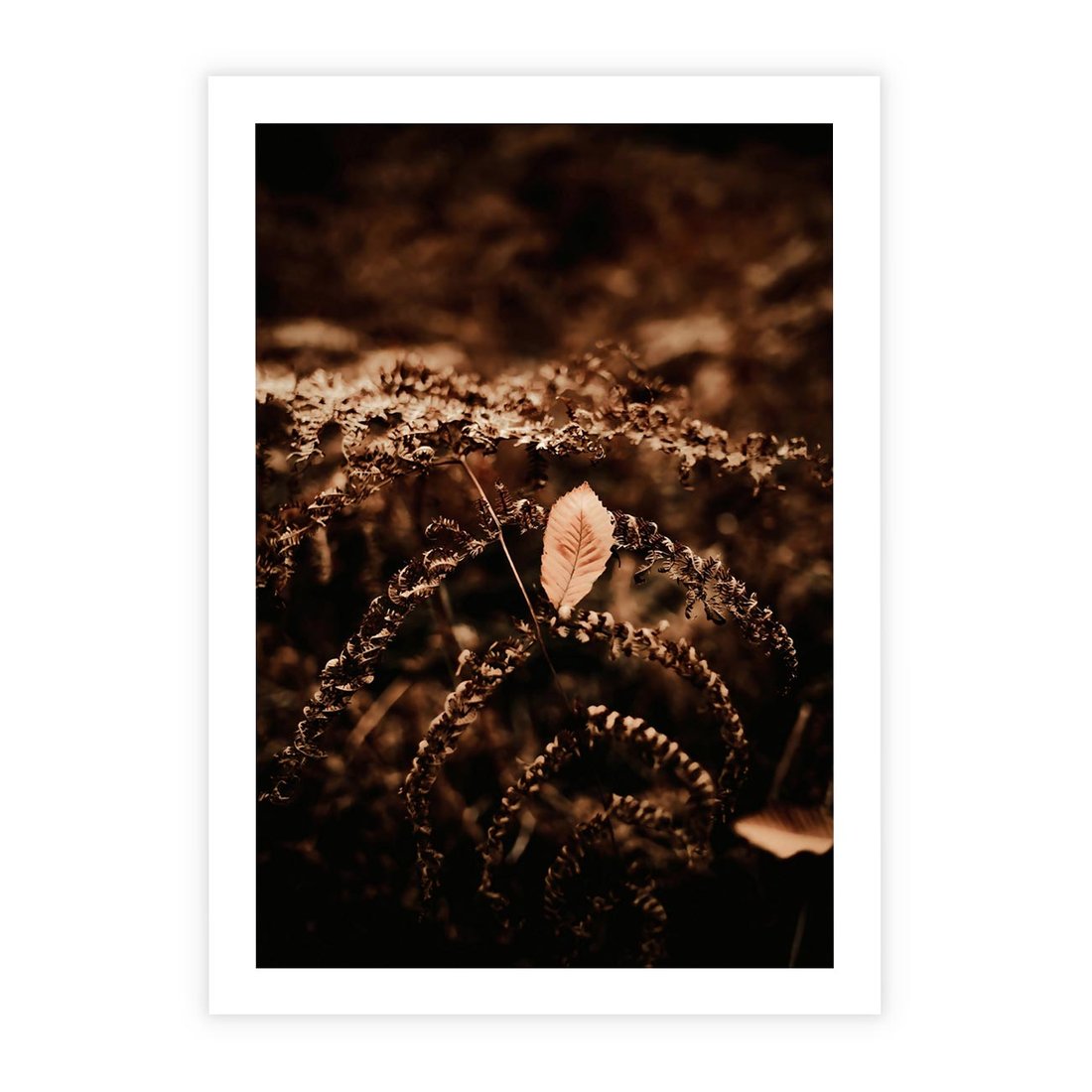 Plakat bez ramy 50x70 - Gałęzie i Liść w Brązowej Tonacji - suche gałęzie, liść