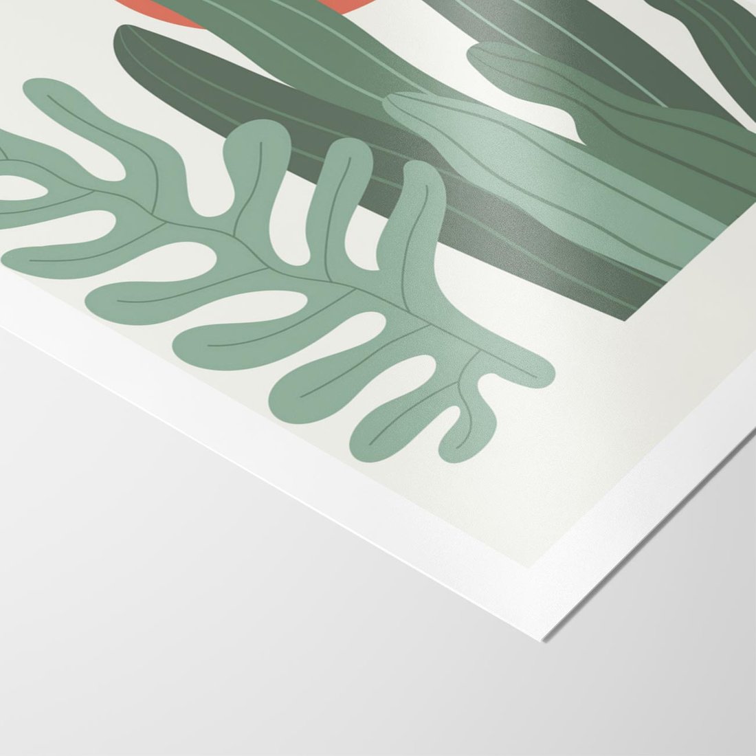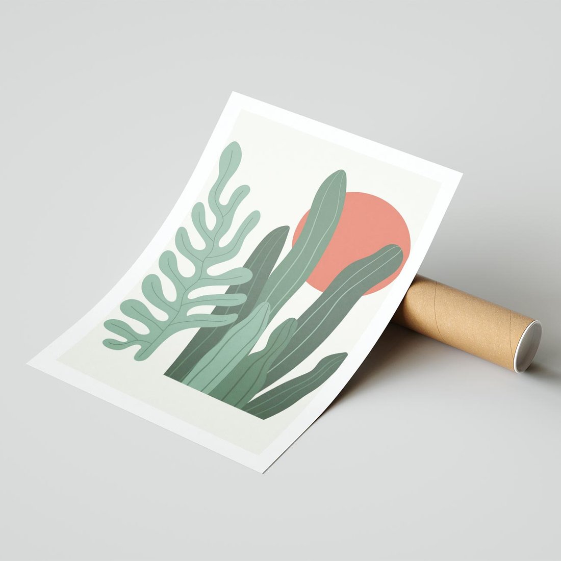 Graficzny plakat to wyjątkowy sposób na wprowadzenie natury do swojego wnętrza. Ten stylowy plakat przedstawia urocze liście i zielone rośliny w nowoczesnej, graficznej formie, dodając świeżości i elegancji każdemu pomieszczeniu.