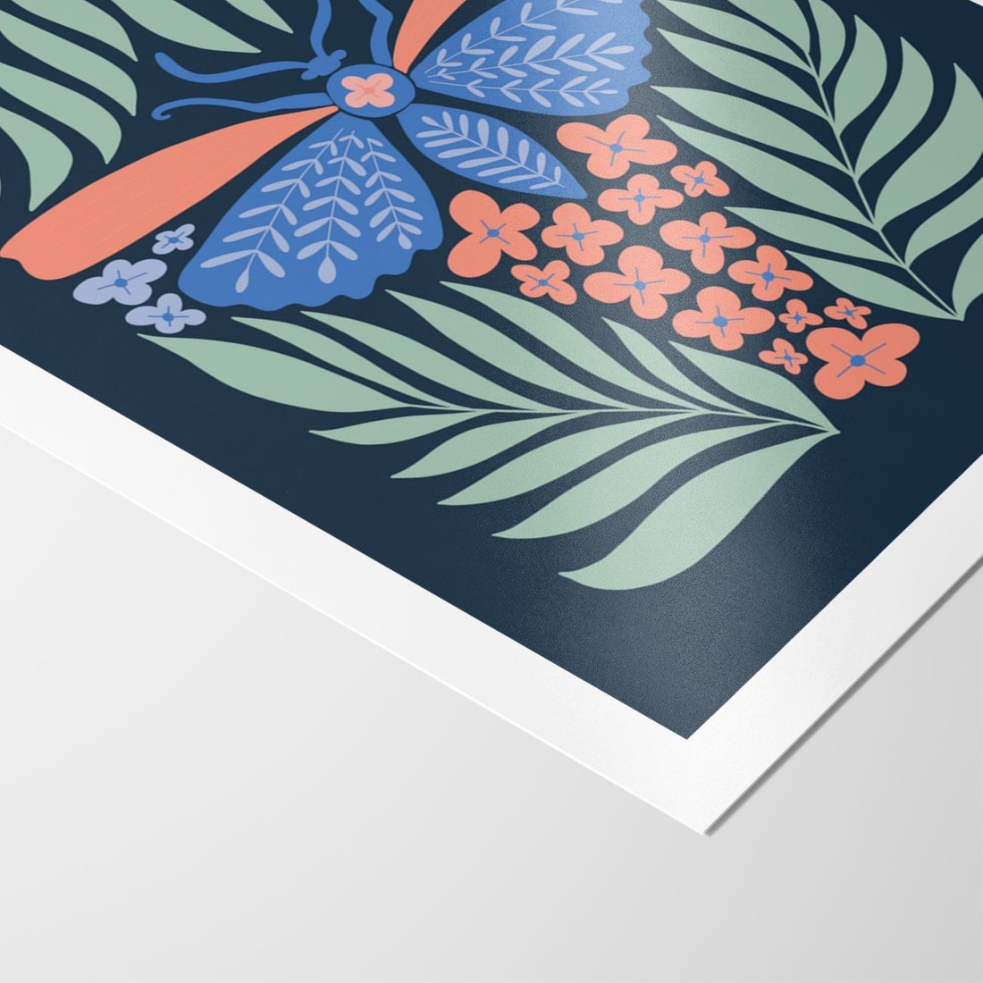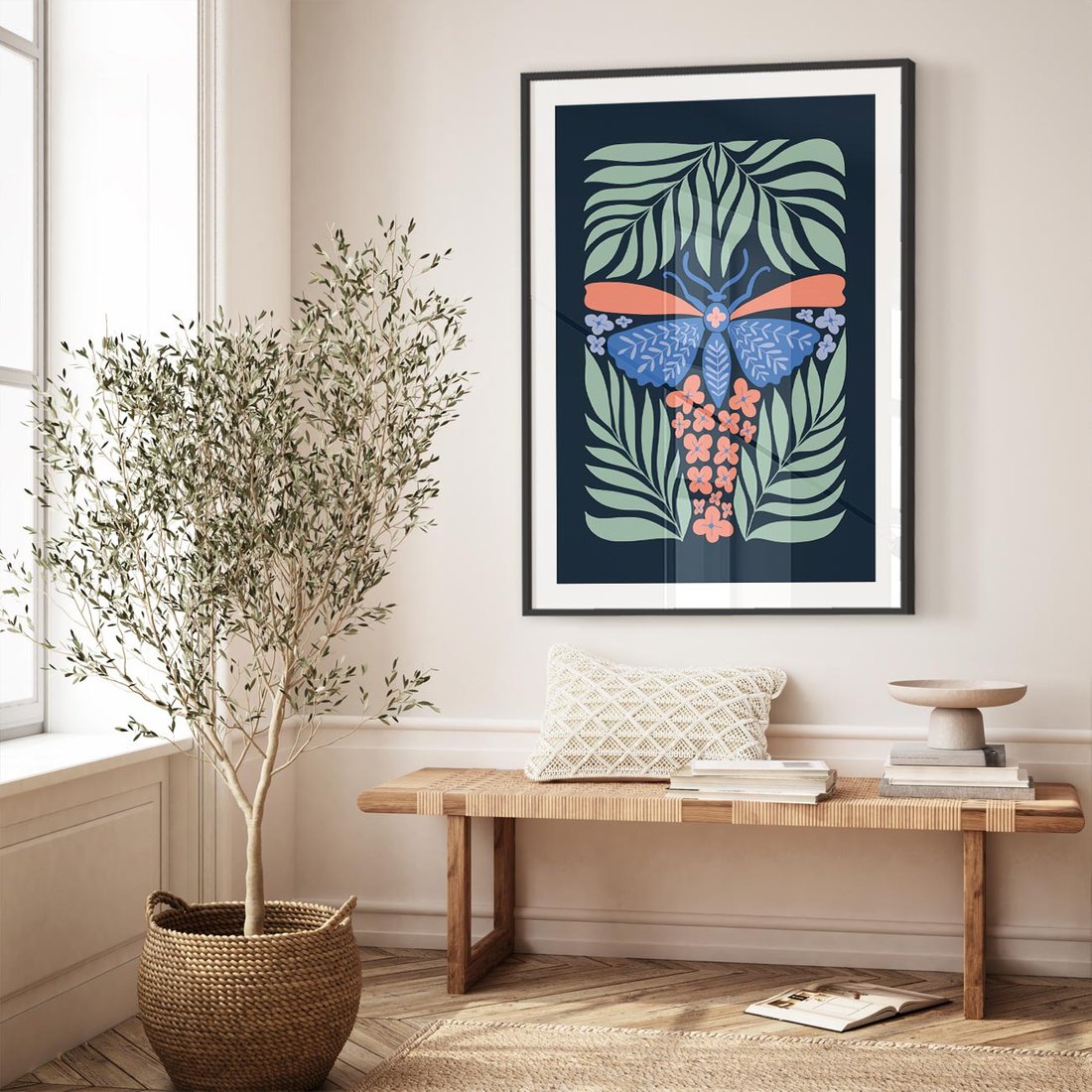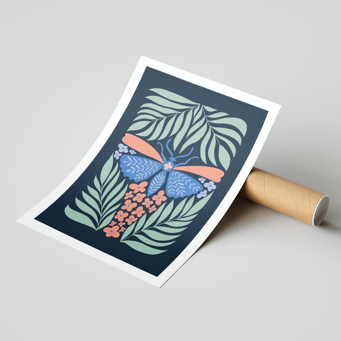 Plakat bez ramy 50x70 - Granatowa Noc - granatowe tło, abstrajcyjna ćma