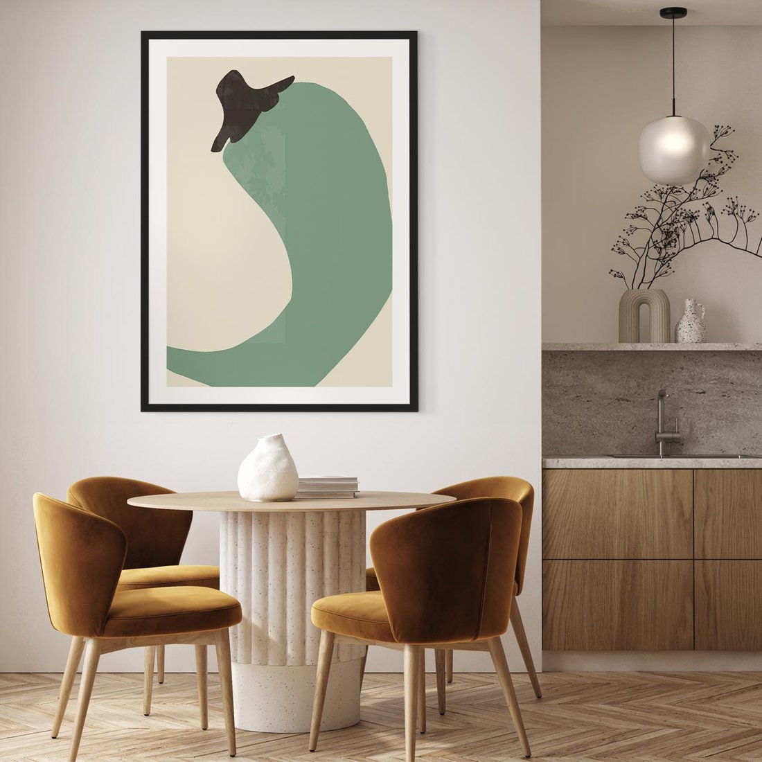 Abstrakcyjny minimalistyczny obraz przedstawiający zieloną papryczkę to prawdziwa perła sztuki nowoczesnej. Minimalizm formy w połączeniu z intensywnym kolorem tworzy wyrazisty obraz, który przyciąga uwagę i zachwyca prostotą.