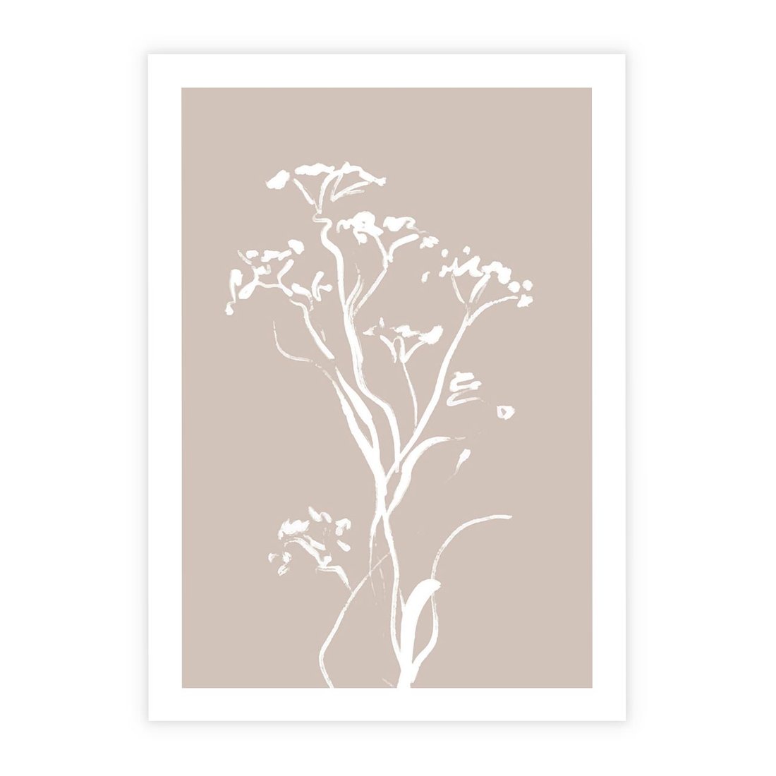 Ten minimalistyczny delikatny obraz w beżowych odcieniach przedstawia subtelne gałązki i roślinne motywy. To spokojne dzieło sztuki, które wnosi naturalny urok i harmonię do każdej przestrzeni.