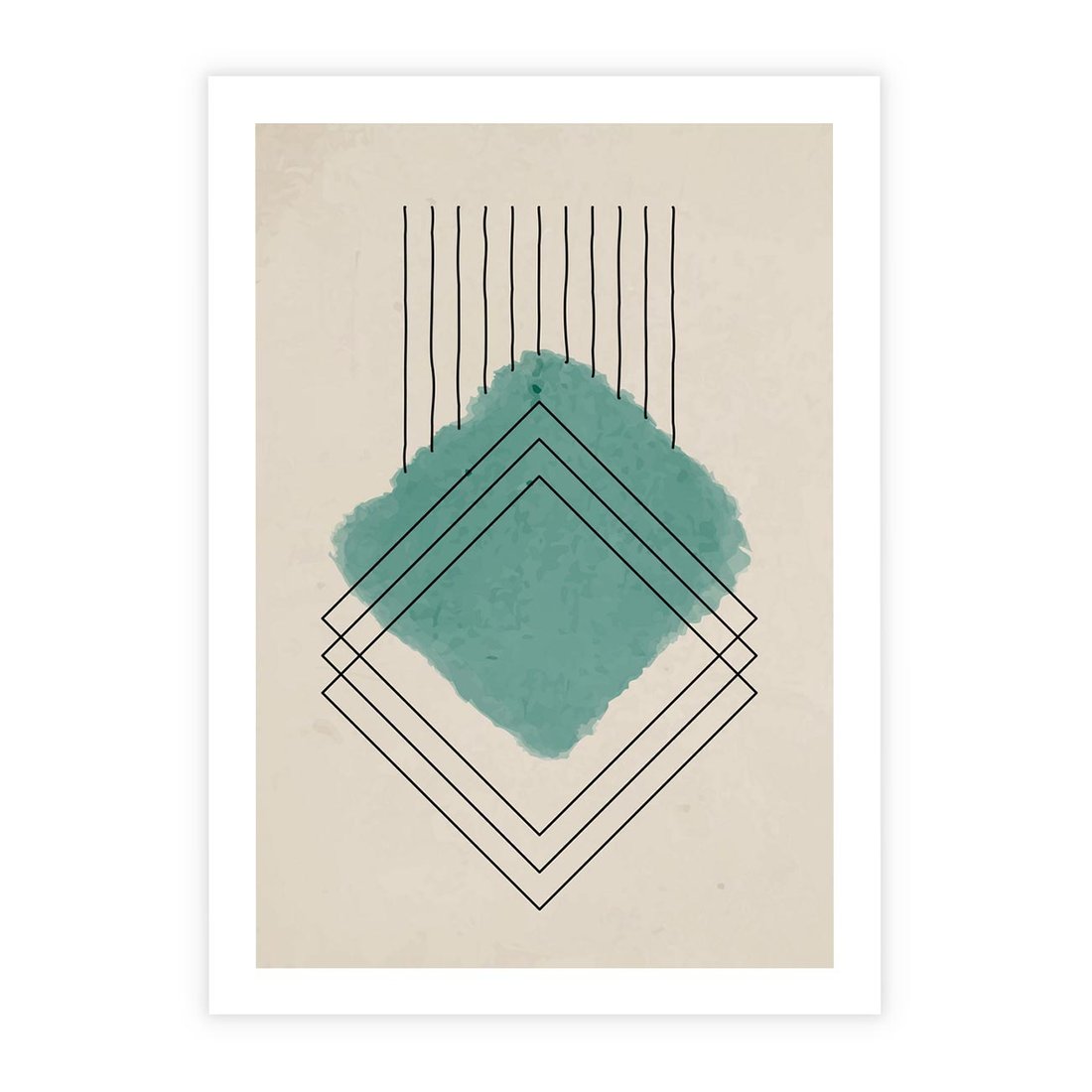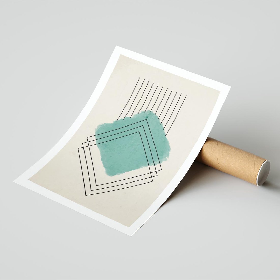 Zrównoważ akwarelową plamę z geometrycznymi, szkicowanymi kształtami, tworząc harmonijną regularność i prostotę w swoim wnętrzu. Odkryj unikalny urok tej kompozycji.