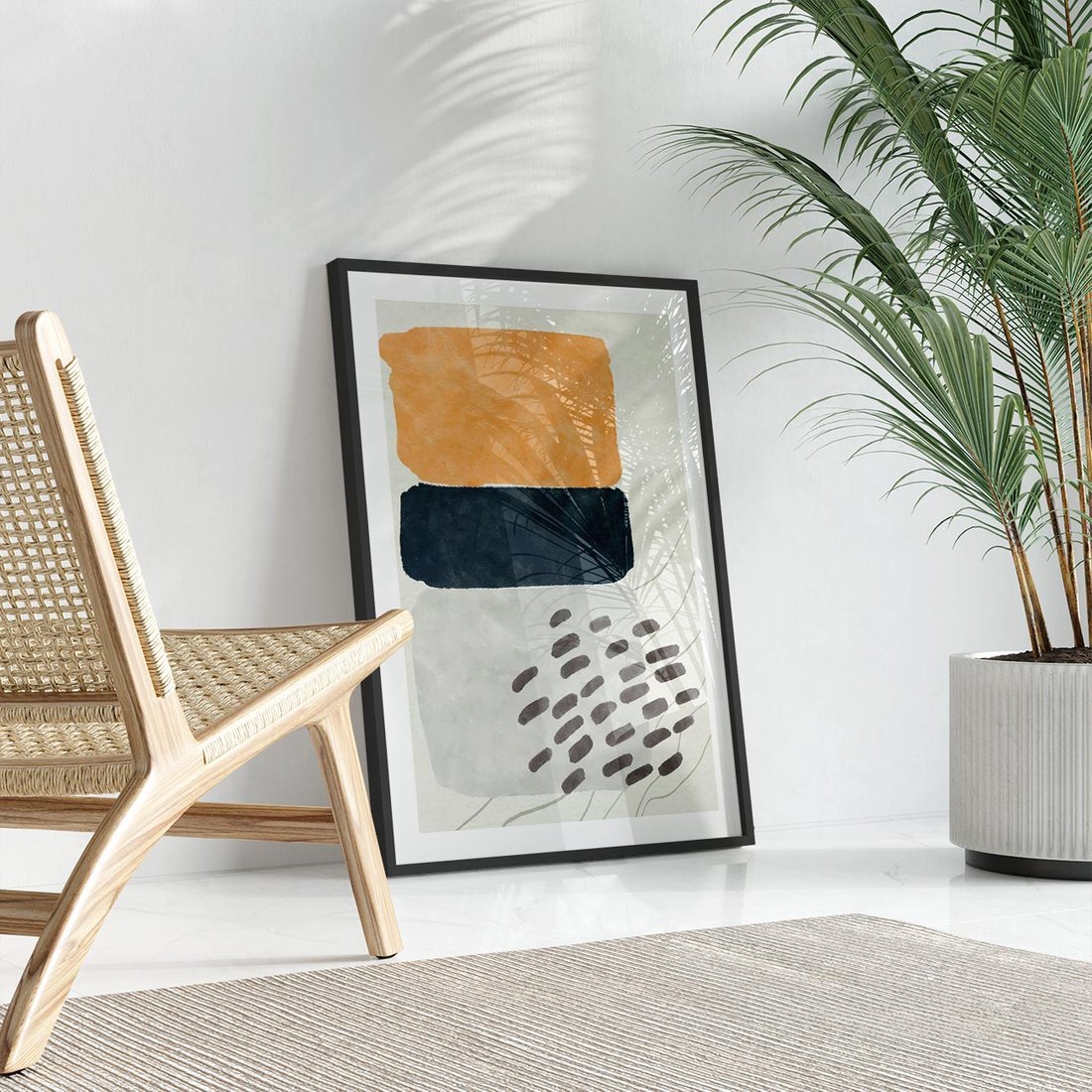 Nasz plakat to połączenie geometrycznych elementów i stonowanych kolorów, tworząc minimalistyczną abstrakcję w duchu sztuki nowoczesnej. To hołd dla minimalizmu, który wprowadzi do Twojej przestrzeni subtelność i nowoczesność w jednym.