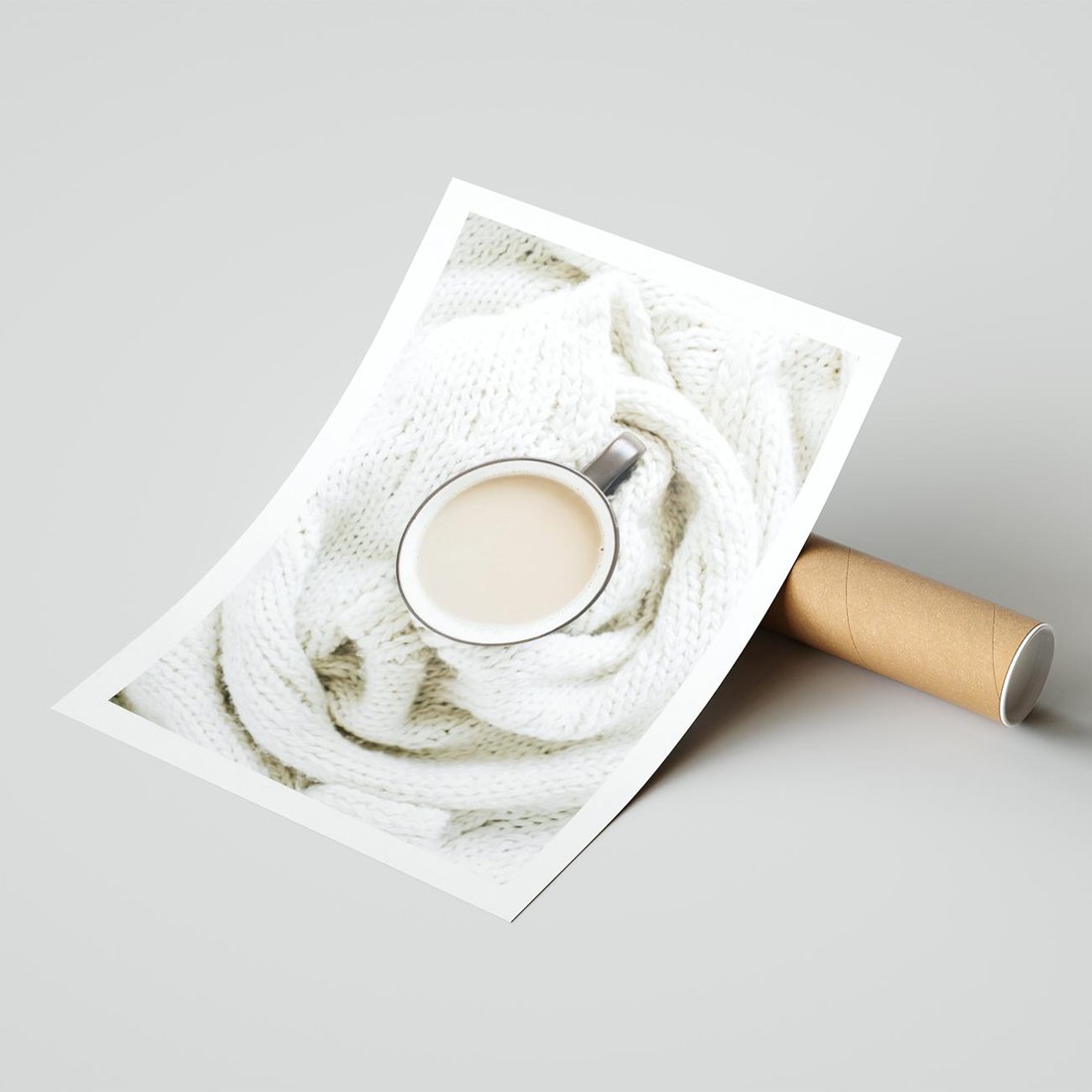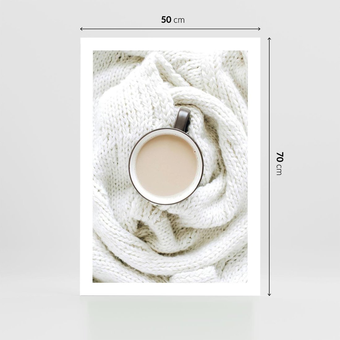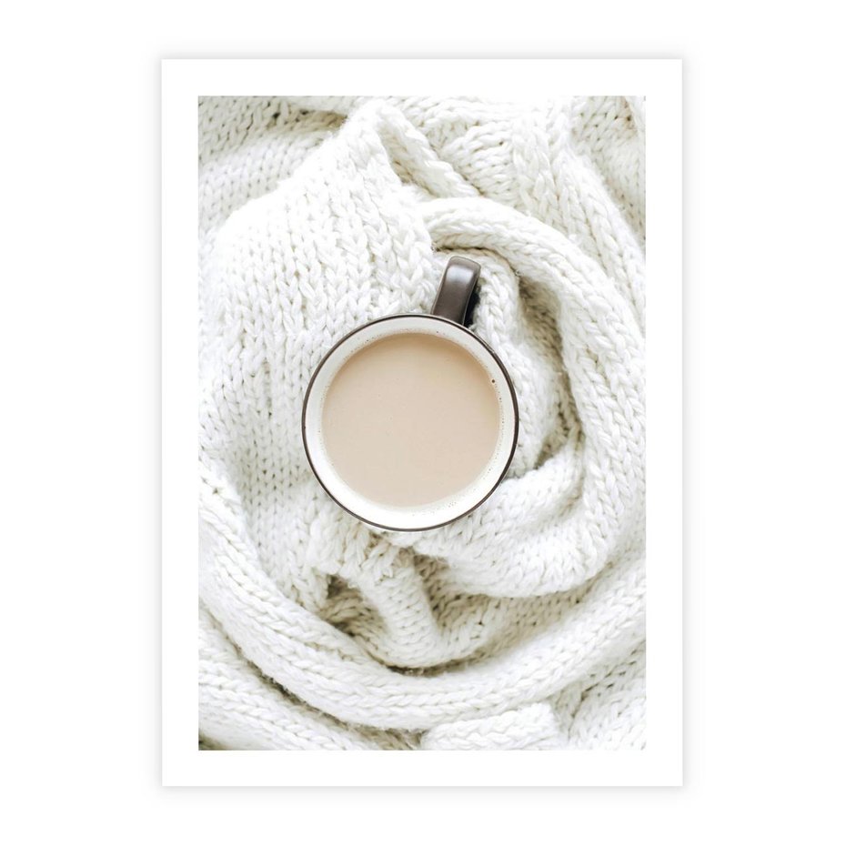 Plakat bez ramy 50x70 - Kawa na Wełnianym Kocu - kawa, biały wełniany koc