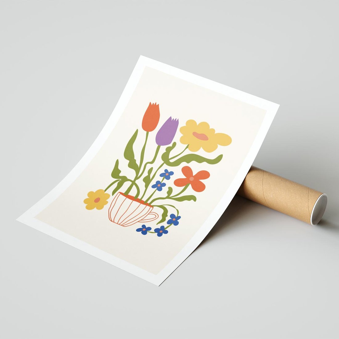 Ten plakat ukazuje abstrakcyjne kwiaty w filiżance w jasnej i nowoczesnej kompozycji. Ta delikatna forma sztuki niesie ze sobą harmonię i spokój, tworząc przyjemną i nowoczesną dekorację, która wprowadza do przestrzeni nutę natury i estetycznego piękna.