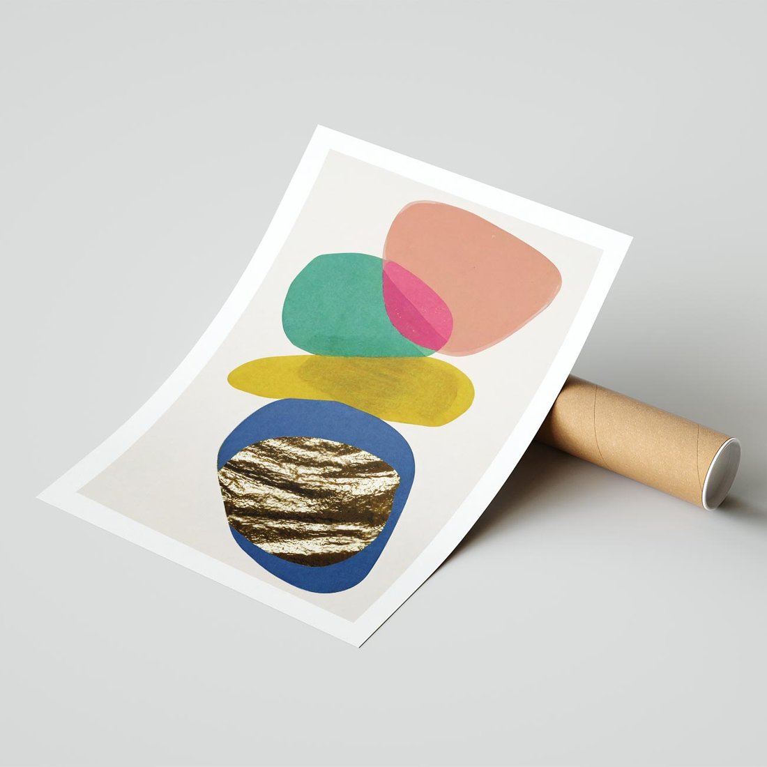Plakat bez ramy 50x70 - Kolorowe Przenikanie Kształtów - abstrakcyjne formy, obraz olejny