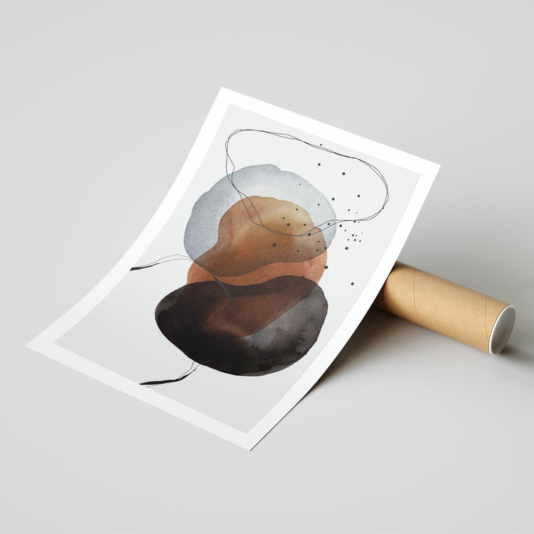 Plakat bez ramy 50x70 - Kolorowe Wizje - abstrakcyjne plamy akwarelowe, czarny szkic
