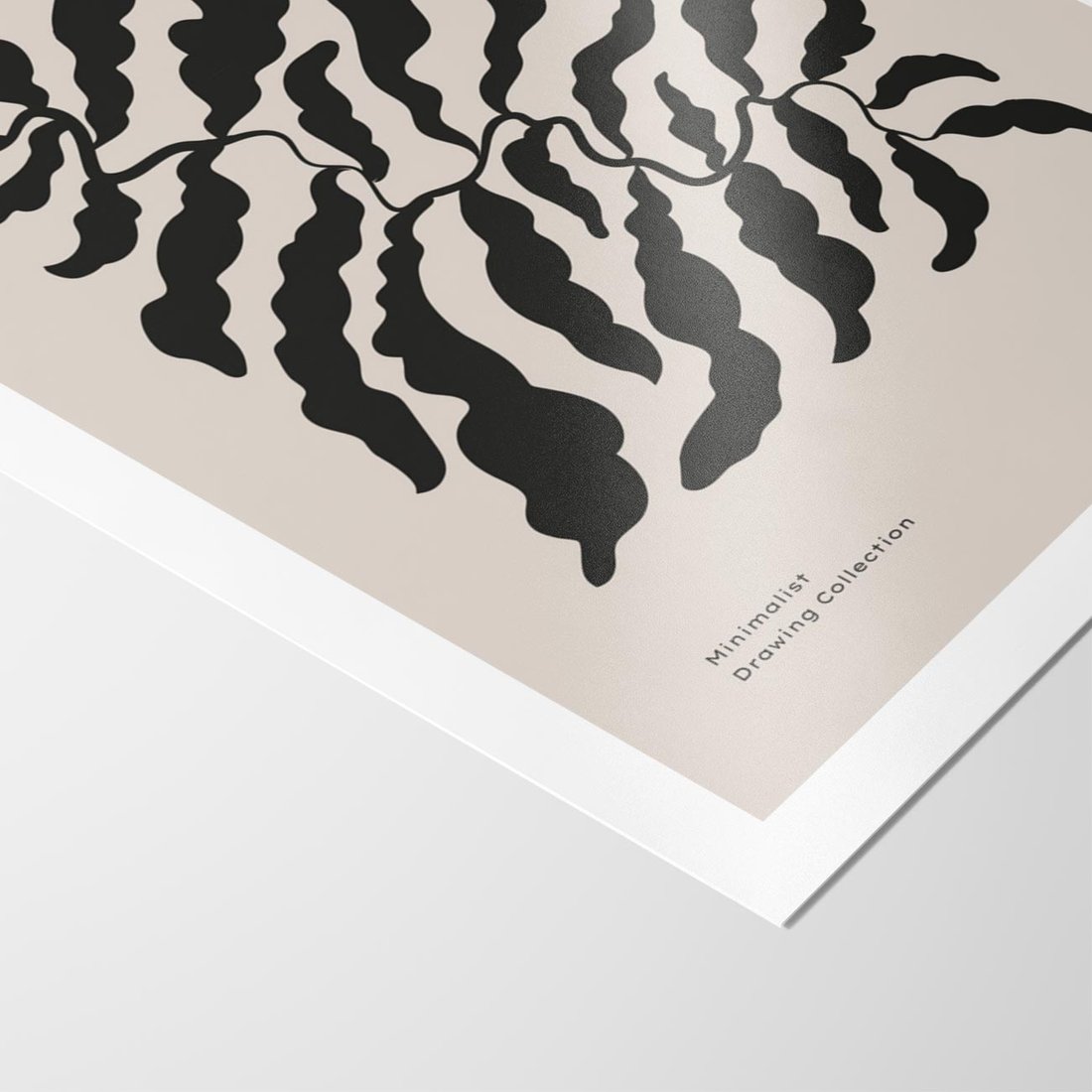 Ten plakat łączy w sobie piękno botanicznych motywów i ducha boho, przy zachowaniu minimalistycznego stylu. Abstrakcyjne liście tworzą subtelne, ale efektowne kompozycje, które wprowadzają naturalną harmonię. Boho typografia dodaje unikalnego charakteru, podkreślając równowagę między minimalistyczną prostotą a wyrazistym wzornictwem. To dzieło sztuki, które zaprasza do spokoju i refleksji.