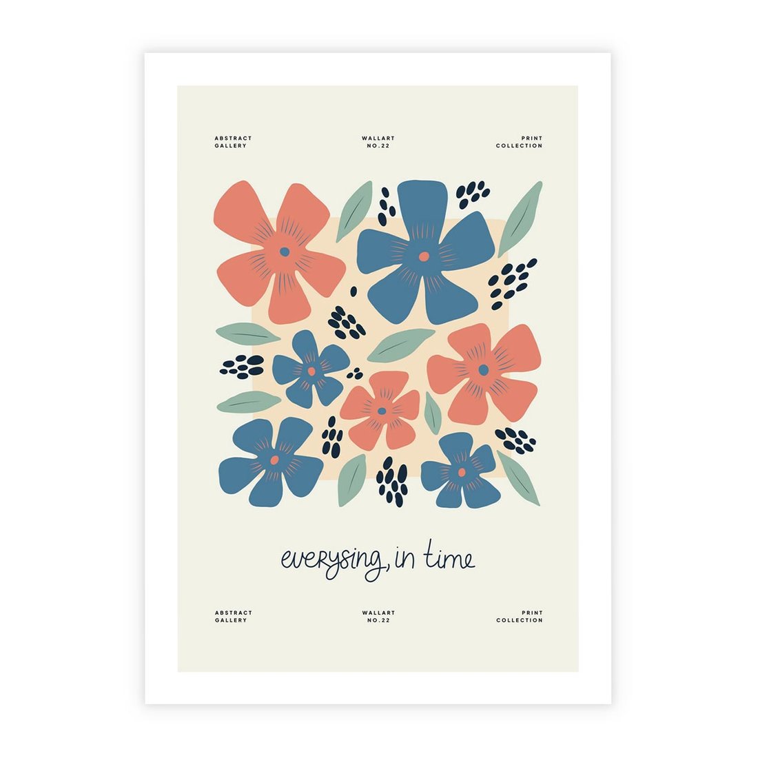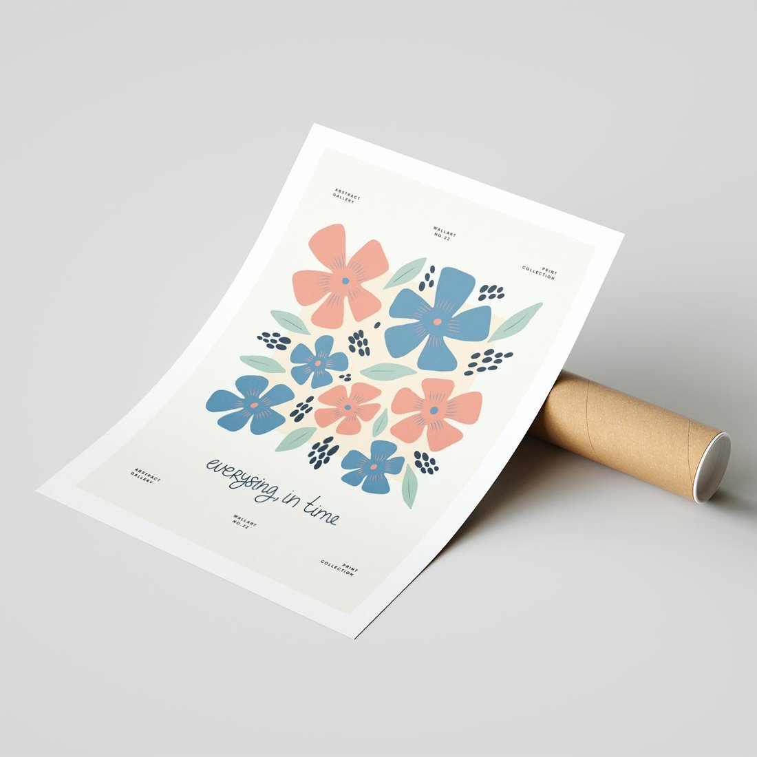 Ten plakat w nowoczesnej abstrakcji odkrywa piękno kwiatów, balansując z delikatną typografią. Kompozycja oddaje wyjątkową estetykę natury i sztuki, tworząc inspirującą przestrzeń.