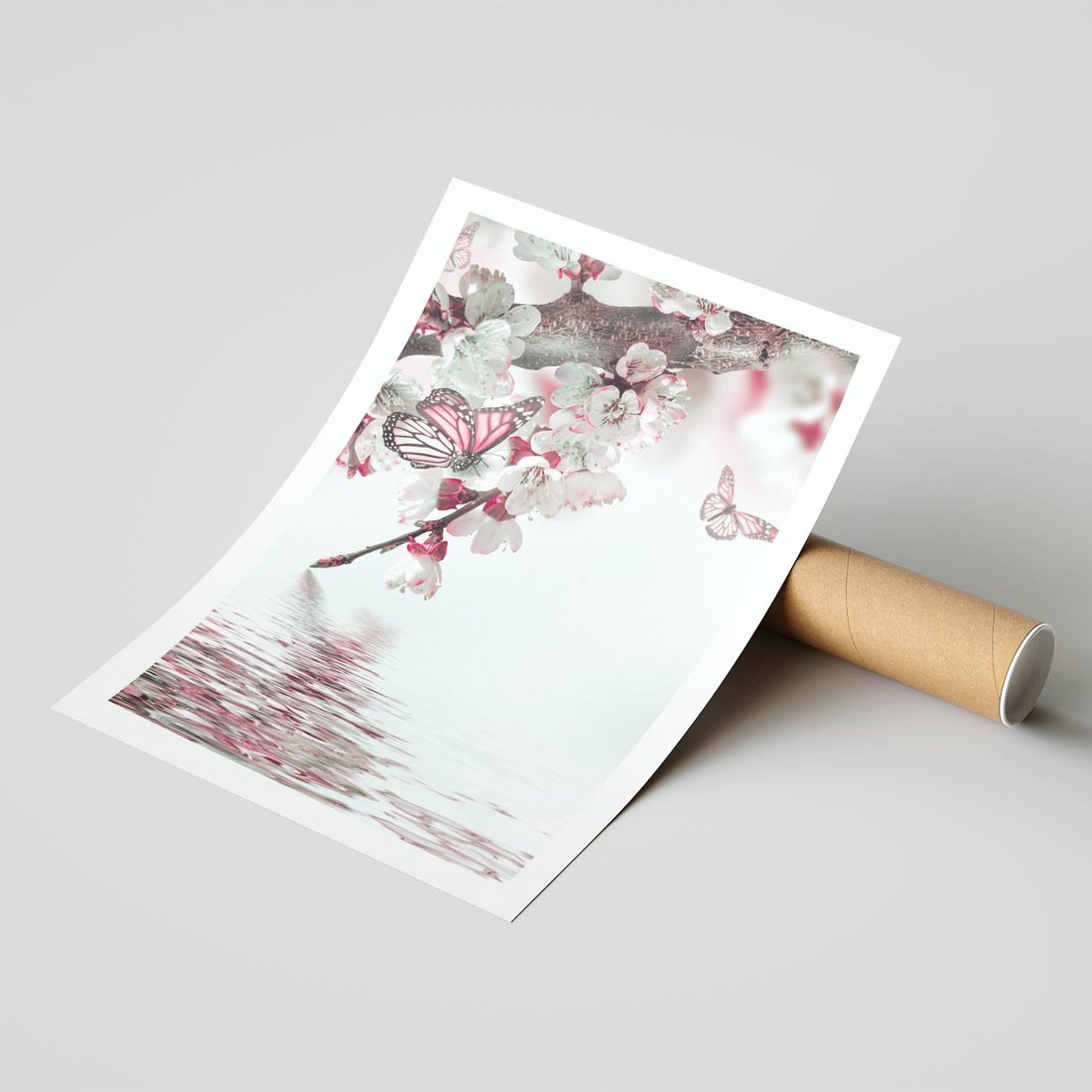 - Plakat bez ramy 50x70 - Kwiatowa baśń z motylami