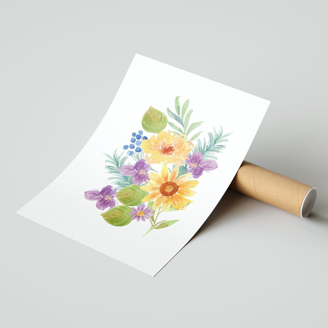 Plakat bez ramy 50x70 - Kwiatowe Inspiracje - akwarelowe polne kwiaty, minimalistyczny plakat